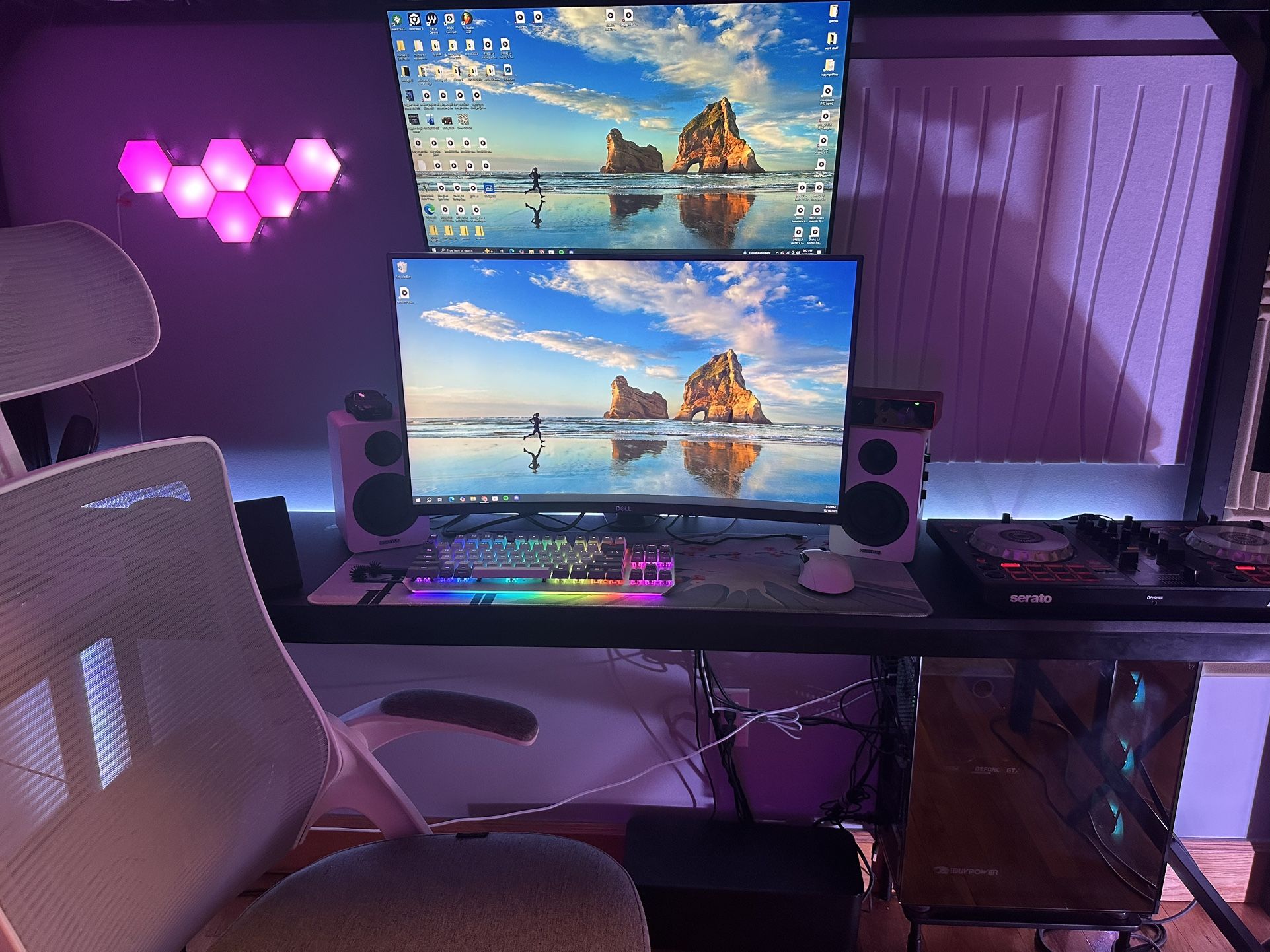 Gaming pc setup, specs are on the last slide. -curved 27 inch dell 144hz monitor -24 inch dell 240hz monitor -rog gaming keyboard -roccat kone wireless mouse