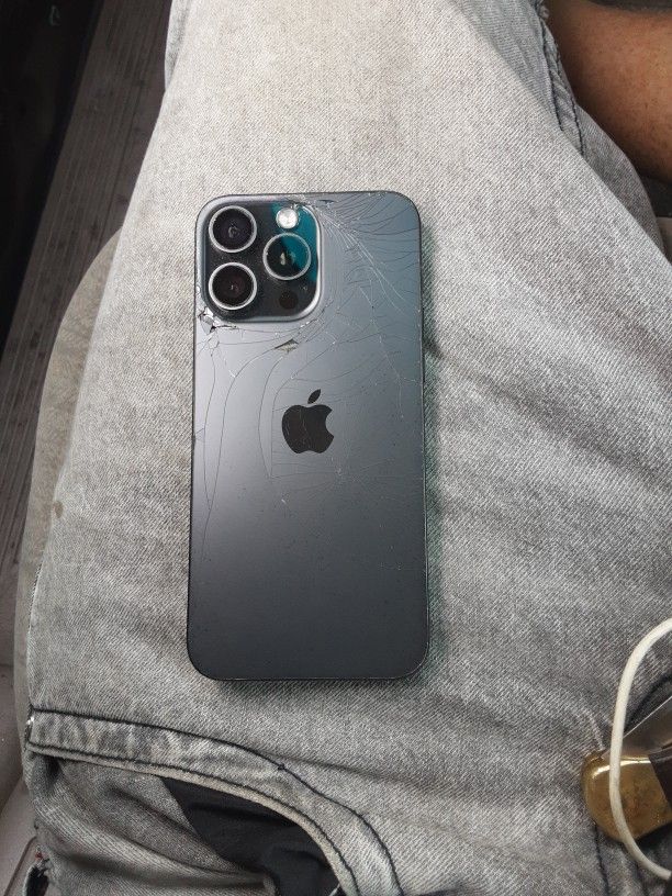 Used iPhone 15 Promax carrier locked to at&t , it has no cracks on the front screen, the back glass is cracked not too bad it's easily fixed but doesn't affect the phones functioning , everythingworks on the iPhone I'm selling because I lost my job and need the money. (the screen protection glass has a couple lines not that bad tho) it comes with a phone case.