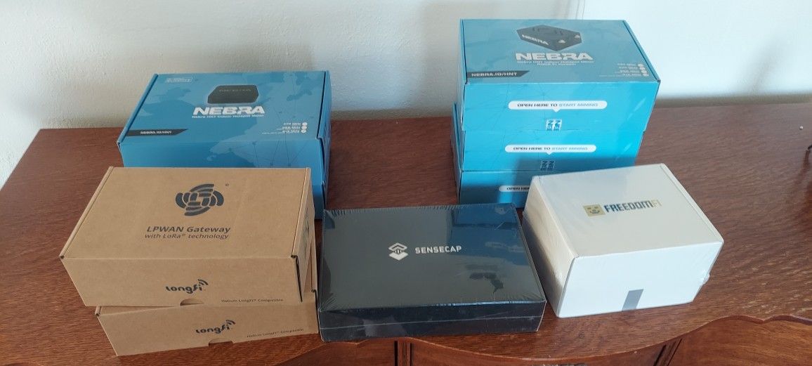 3 new nebras, 1 sensecap and 1 5g freedomfi. 2 raks and 2 nebras. Large amount of extras. Antennas, cables, crimps, crimpers, mounting equipment, 3d printed stands for 3dbi window placement. Will consider trade for a nas.