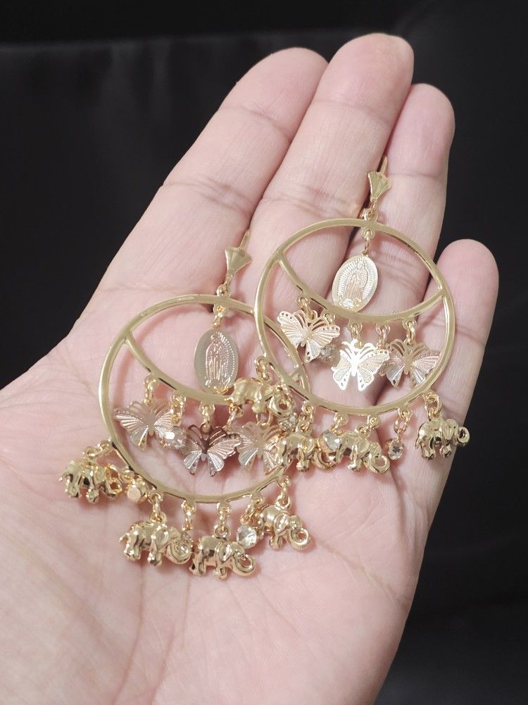 Aretes tricolor Mariposa laminado en oro 14k Chandelier earrings 14k Gold Plated
