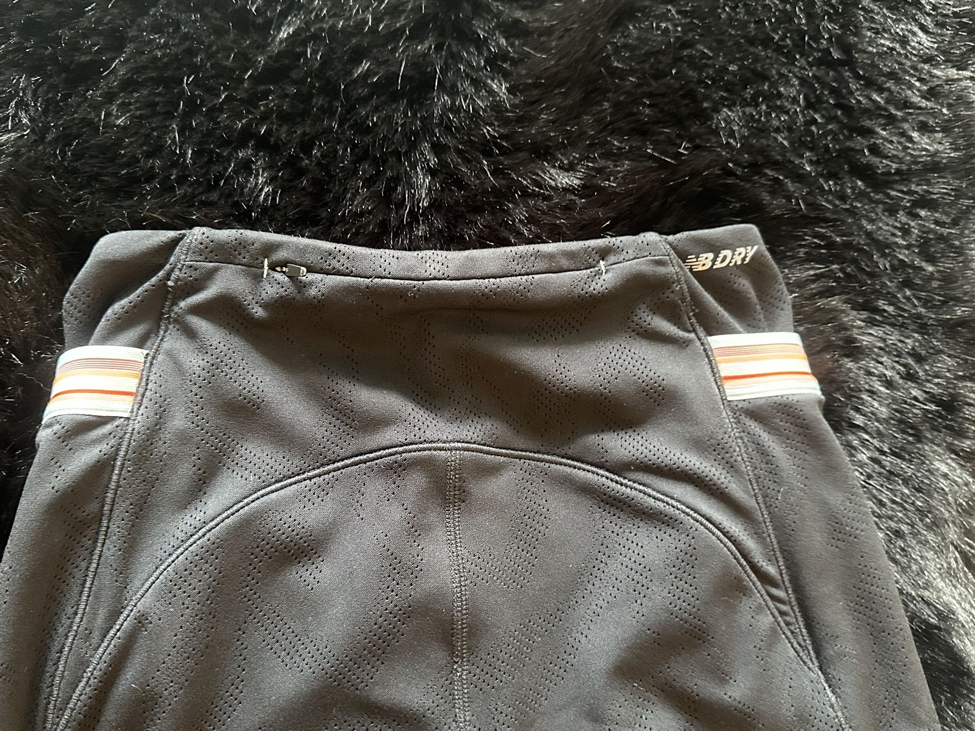 Pockets on each side, zipped pocket in back, reflective designs on pants