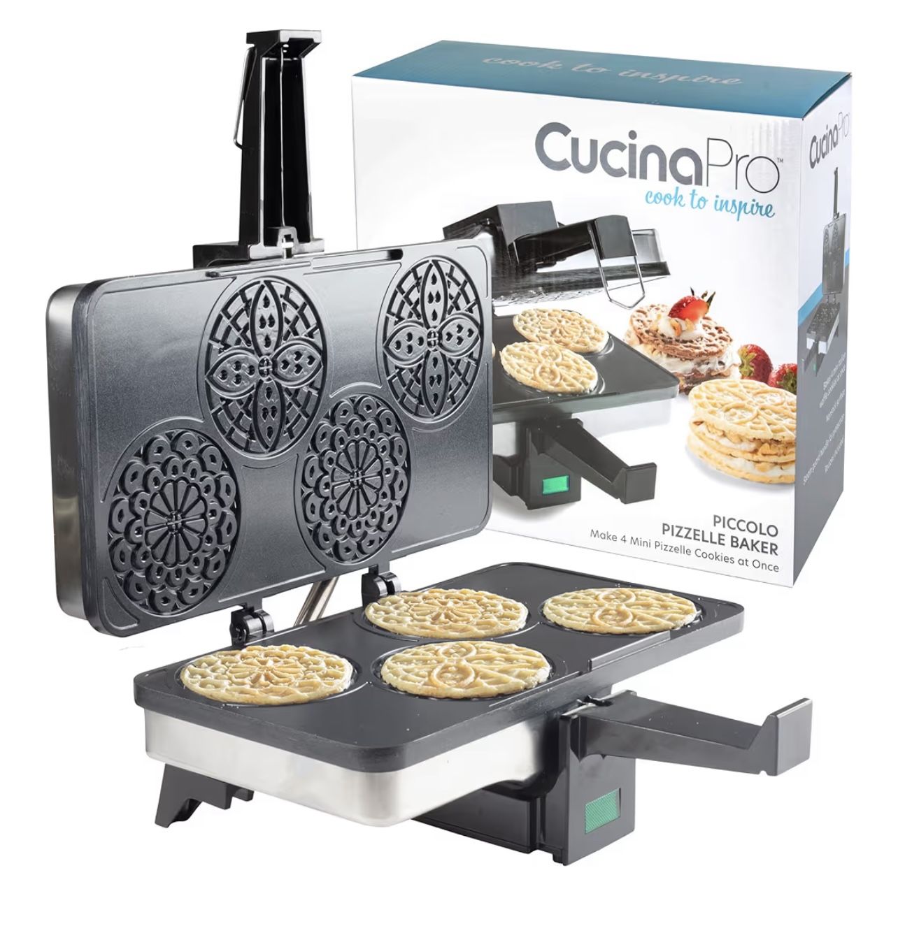 Piccolo Pizzelle Baker- Nonstick Electric Press Makes 4 Mini Holiday Cookies at Once- Recipe Guide Included- Fun Christmas Baking Supplies for Party, Italian Waffle Dessert Treat Making- Gift for Her brand new is this open box