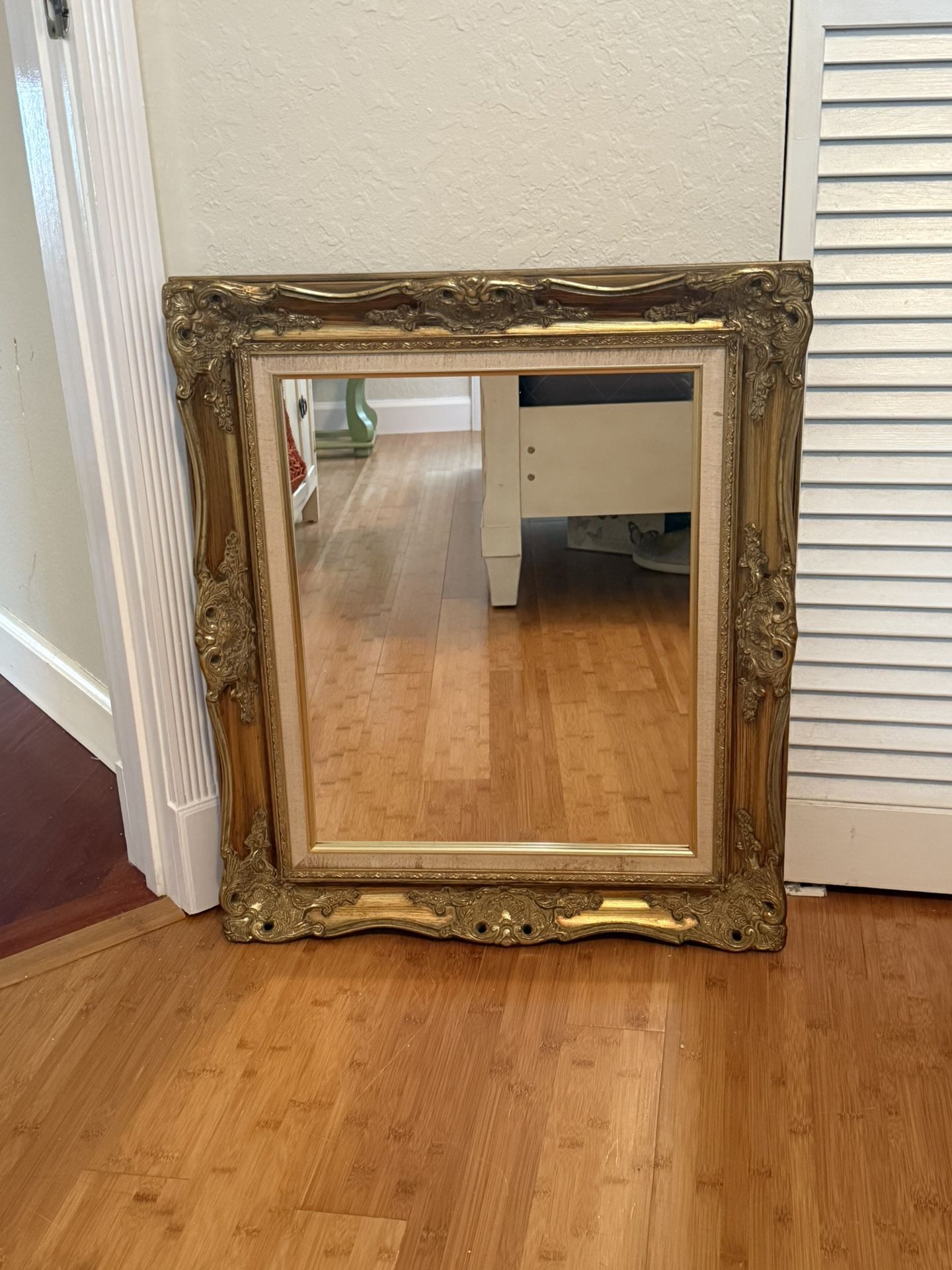 Gold ornate vintage mirror Wooden Frame 26” X 22”