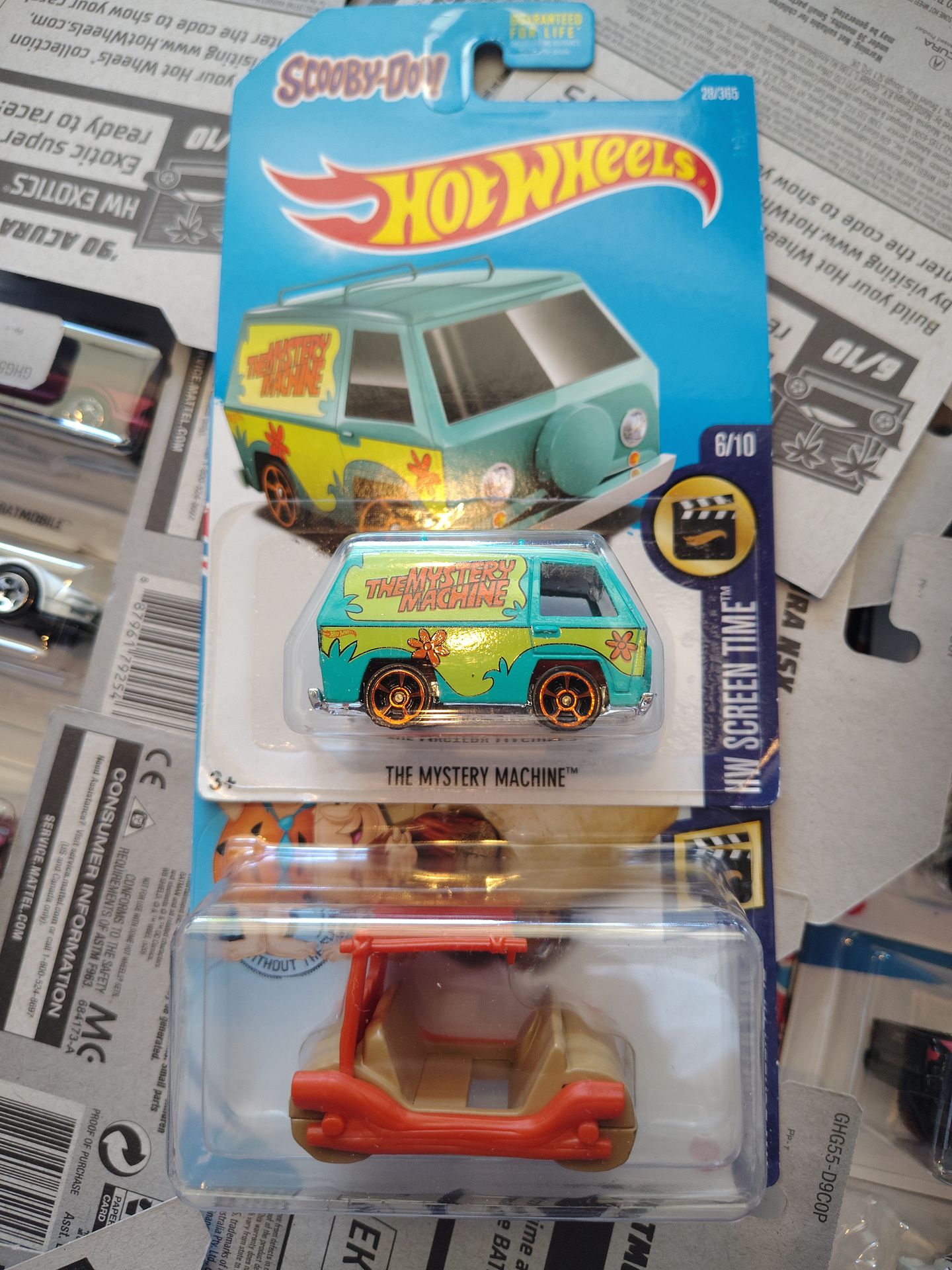 Hotwheels the mystery machine from the show Scooby-Doo and the Fred Flintstone mobile from The Flintstones. Both for $10