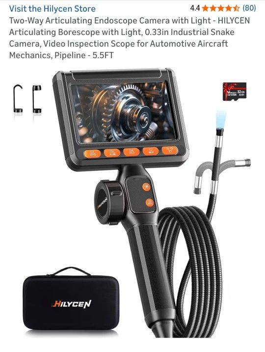 Two-Way Articulating Endoscope Camera with Light - HILYCEN Articulating Borescope with Light, 0.33in Industrial Snake Camera, Video Inspection Scope for Automotive Aircraft Mechanics, Pipeline - 5.5FT