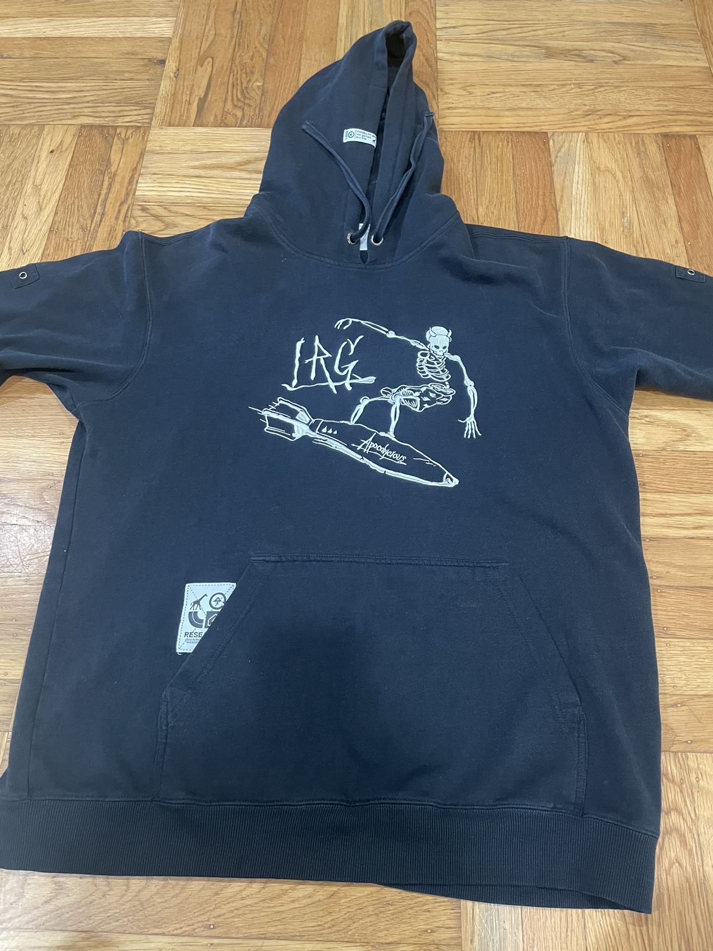 Used: Y2K 2000 LRG Skull Skateboard Surfing Hoodie. Mens size XL No major damage or flaws. Hoodie has a nice black fade due to age/wear.