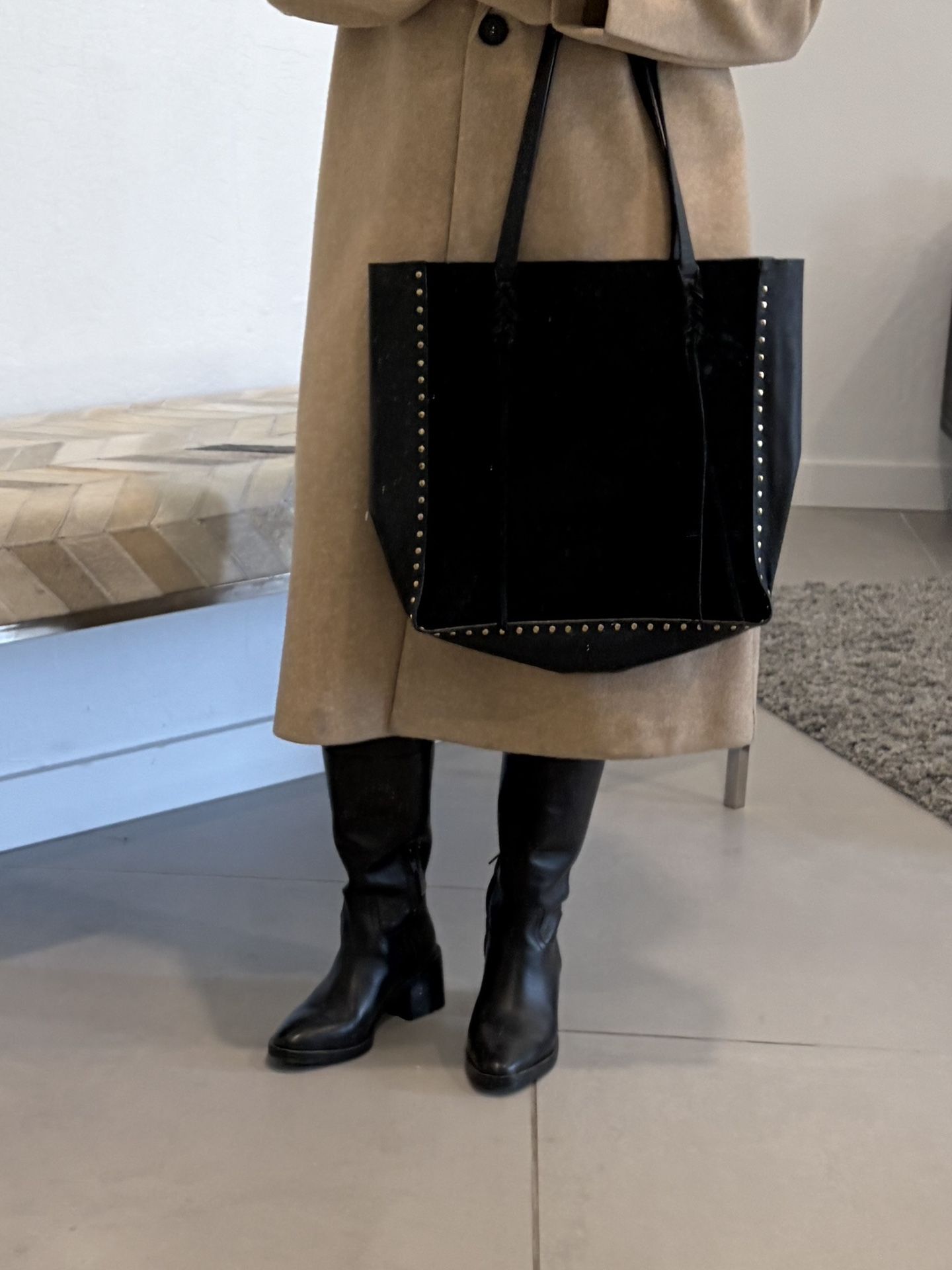 Vince Camuto Leather Suede Tote Bag With Gold Studs
