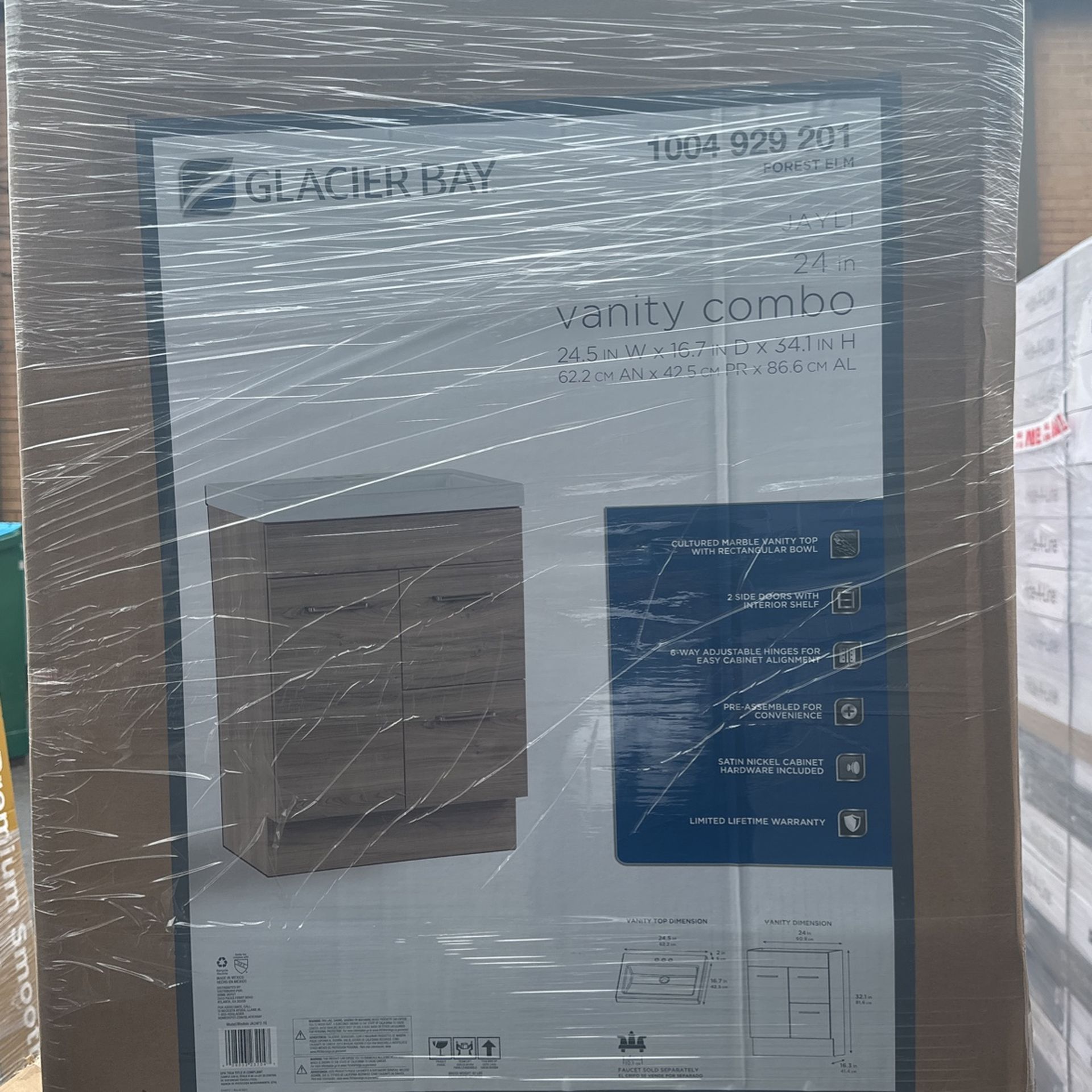 Glacier Bay Jayli 24.5 in. W x 16.75 in. D Bath Vanity in Forest Elm with Cultured Marble Vanity Top in White with White Sink