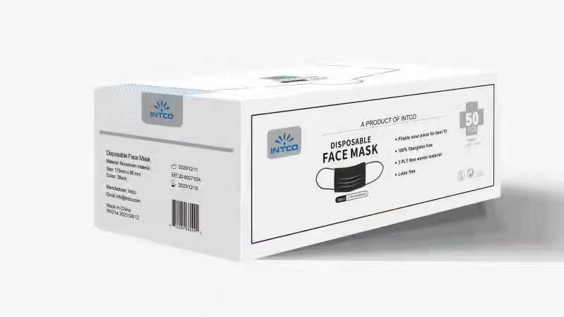 Intco Black Gray 3ply Face Mask 50pcs per box 40boxes per case