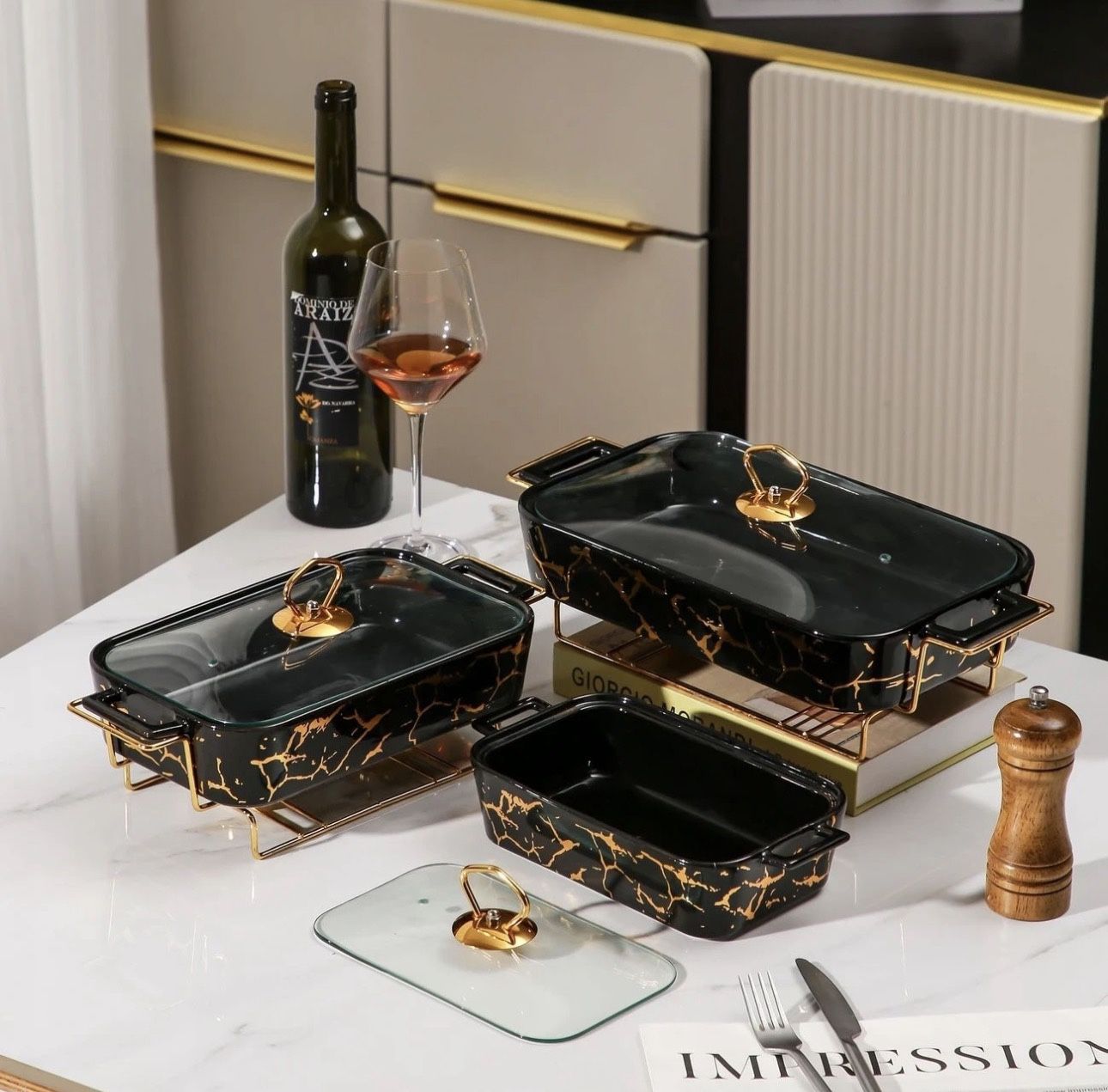 3PCS Rectangular Porcelain Casserole Warming Trays for Food, Ceramics Chafers, and Buffet Warmer black Brand new still in the box D552)(D552)