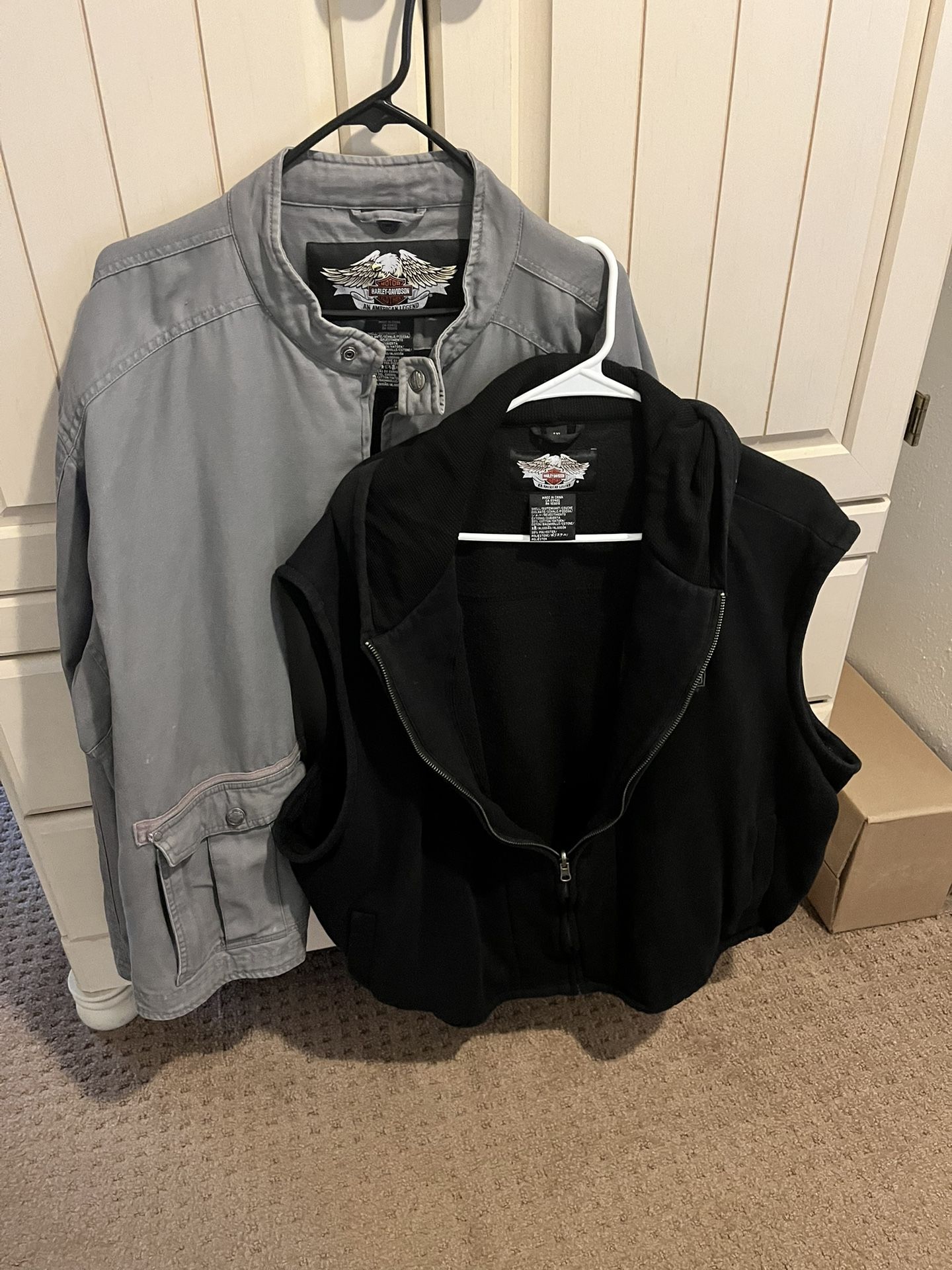 Harley Davidson Jacket With Matching Black Vest - Size “M”