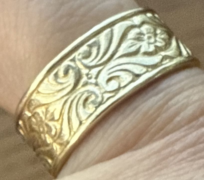 Solid 14k Gold Scroll Design Ring Size 5-3/4, 7mm Wide