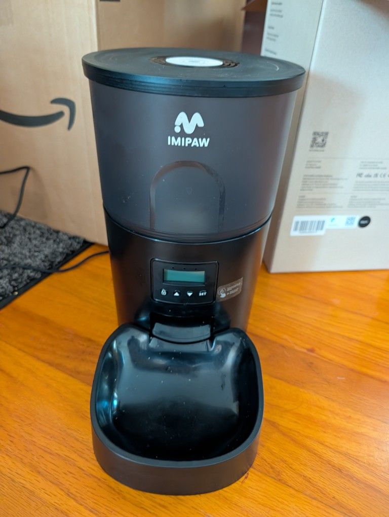 Slightly used pet feeder. This is a 3 Liter automatic cat/dog feeder. Kibble can be up to 10mm in size. I decided to purchase a larger one.