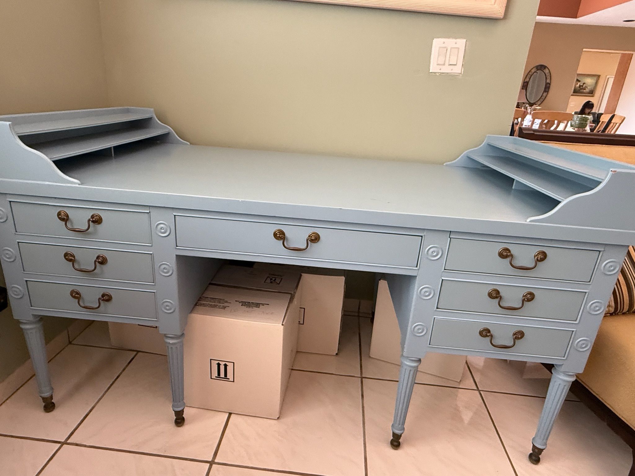Antique solid wood writing desk. Dimensions are: 65”L, 32”W, and 30”H. Price is negotiable. Pick up only in West Kendall.