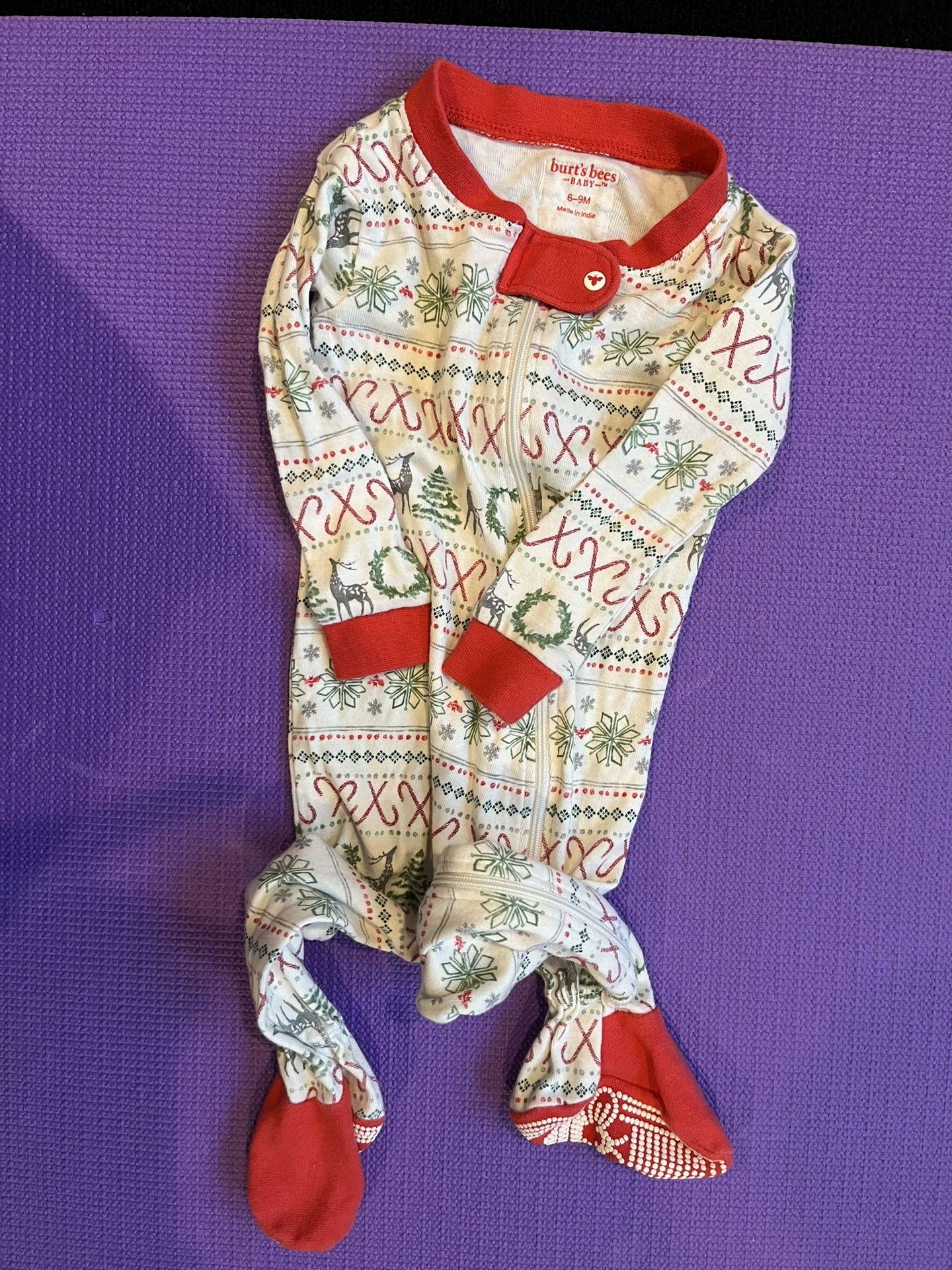 6-9 Month Burt’s Bees Christmas Onesie with grippy feet. NWOT!