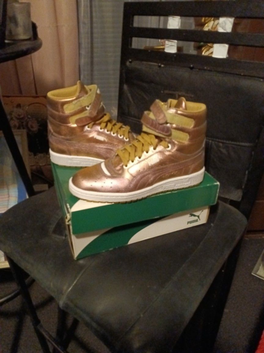 Gold Sky 2 Hi holo Jr Puma contact size 61/2 barely worn still in box