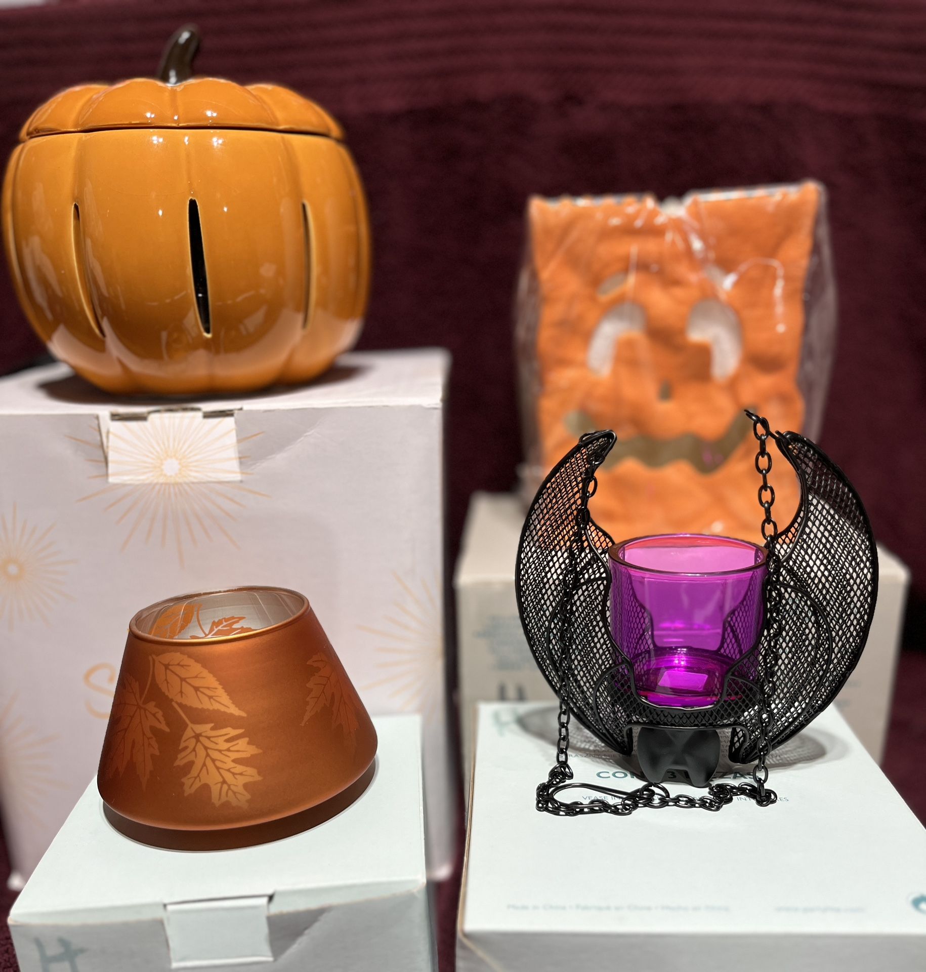4 vintage PartyLite items: * Bat Hanging Candleholder - NEW * Pumpkin “Luminaria” Candleholder - NEW * Candle Topper - NEW * Melt Warmer - Lightly Used (very small internal chip - not visible in use) All in original boxes. Each of these items was retired by PartyLite some years ago ago. If you are interested in multiple items, I’m happy to discuss a price reduction.