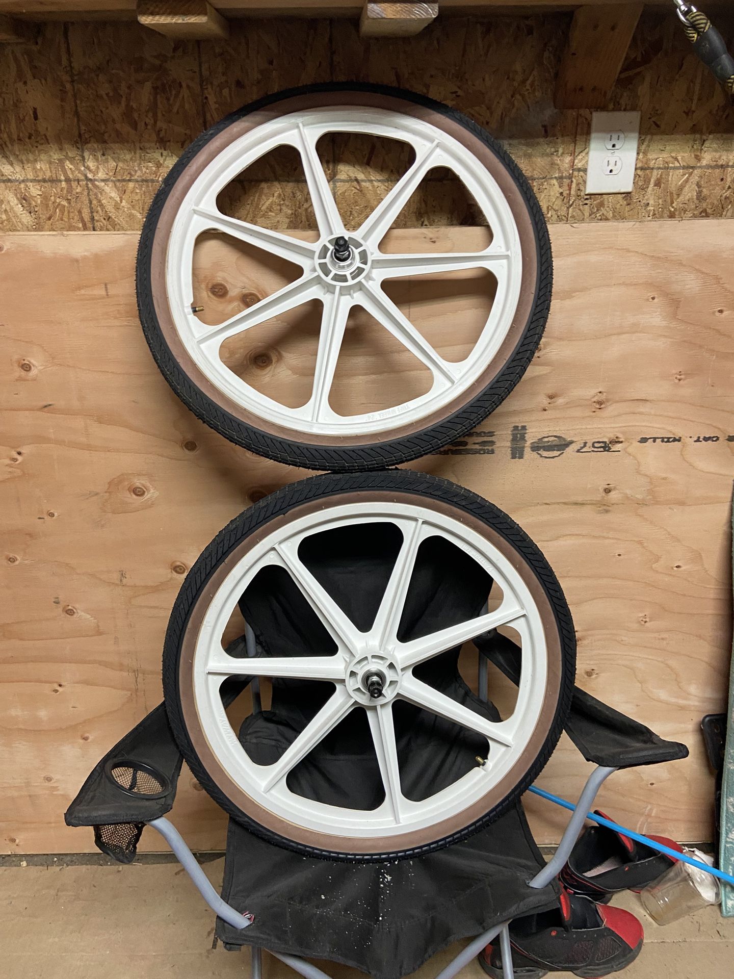 Pretty nice shape $250.00 Hard to find vintage mags Maybe Trade what cha got ! The Skyway Tuff Wheel II 24” Wheel Set is perfect for anyone trying to relive their glory days on a modern bike. Sealed precision bearings, 3/8" font axles, 14mm rear axles, and a 9T cassette driver round finish off these classic mags, and make it easy to give your ride a vintage look. Or complete your vintage build!
