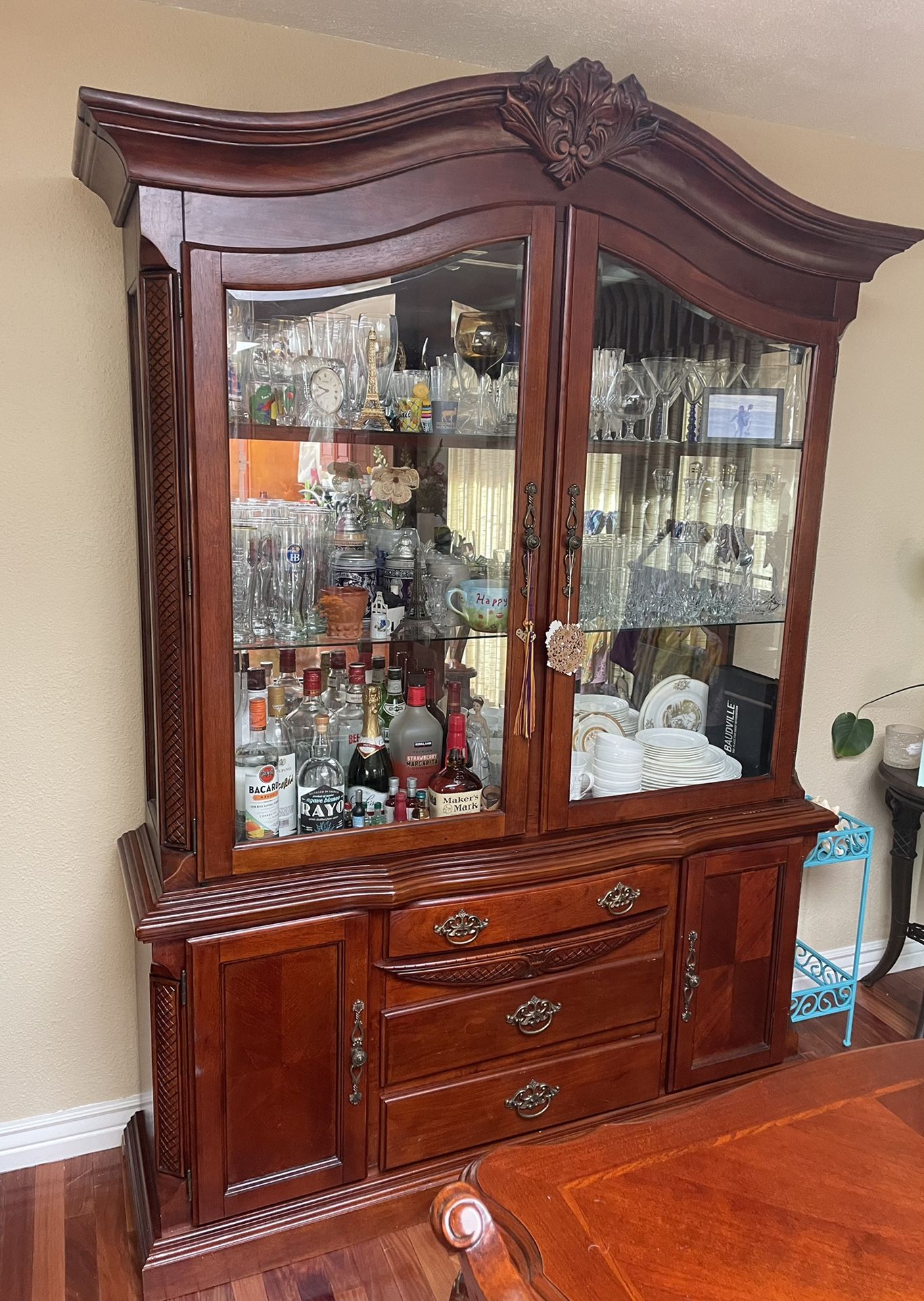 Great quality Beautiful solid mahogany wood Includes: Expandable Table 8 Chairs (two arm chairs and 6 regular chairs) China Cabinet