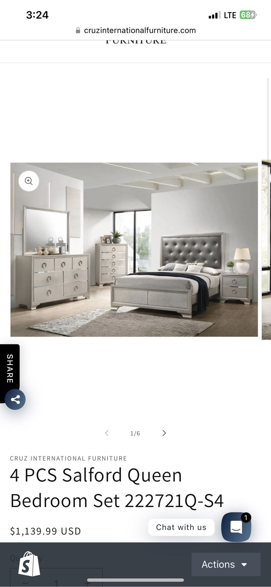 Brand New in box Cruz International Furniture . C 0 M ☝️ View more ☝️ 4 Pcs set ( dresser, mirror, nightstand and queen bed ) Also have living room set, mattress, dining room set, bed sofa couch sectional tv stand nightstand chest bar stool bar stools coffee table patio set outdoor furniture queen bed king bed set chair chairs