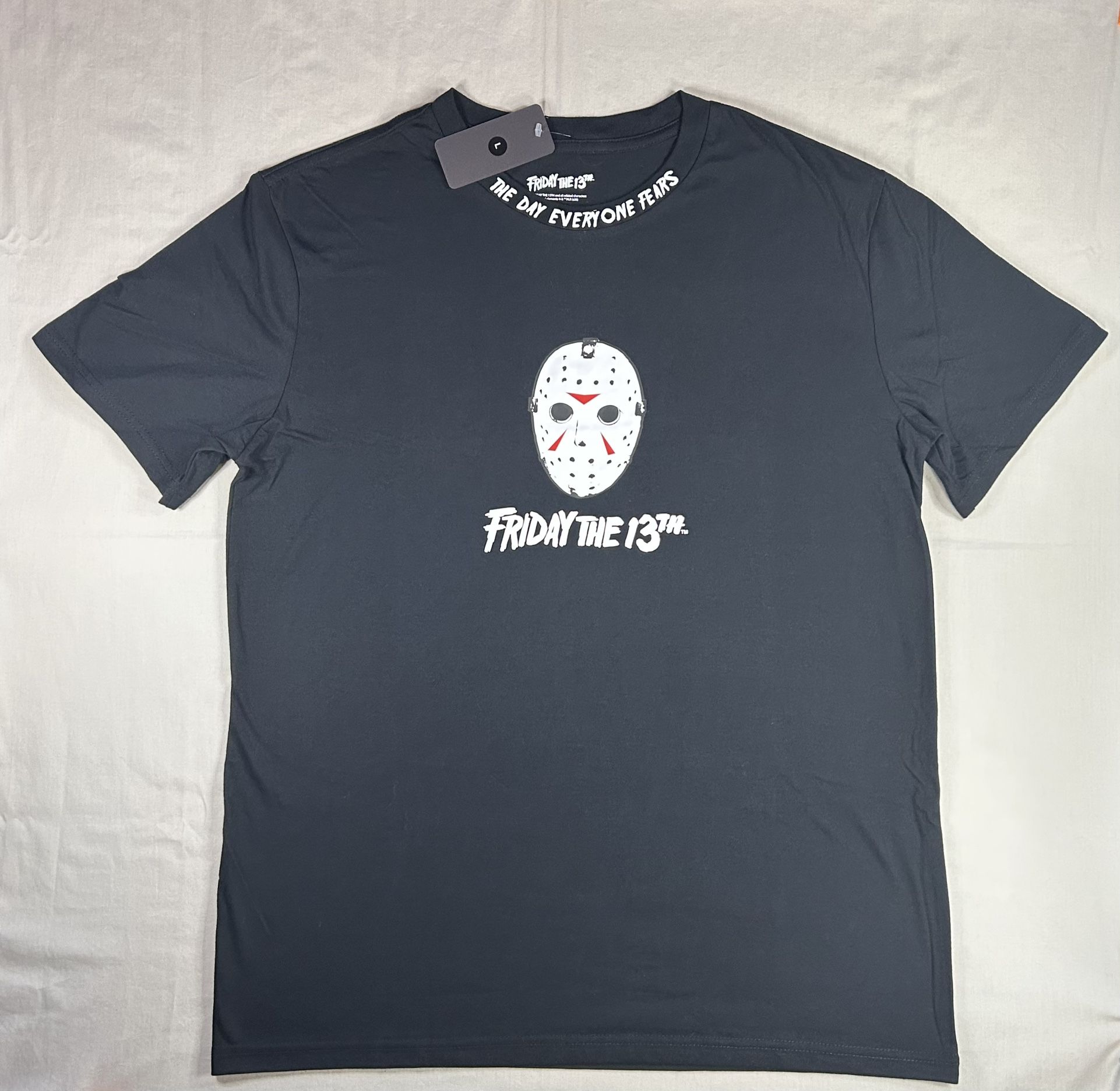 Officially licensed ‘Friday The 13th’ black tee with iconic Jason Voorhees mask screen printed graphic. Perfect for fans.