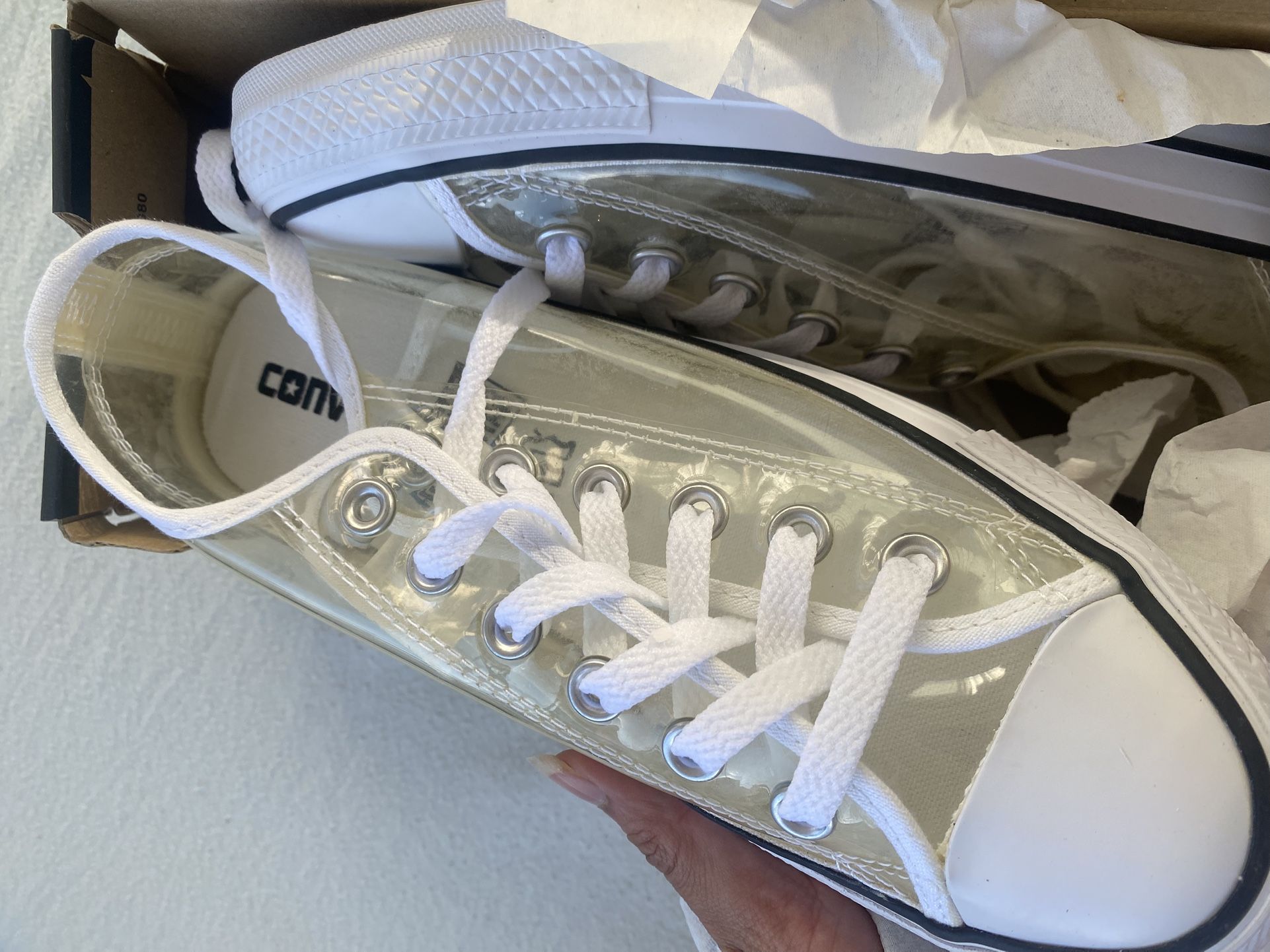 MOVING OUT SALE! EVERYTHING MUST GO BEFORE JANUARY 29th!! Check out my page to bundle/get cheaper prices! Clear / Transparent White Converse Sneakers Low-Tops Brand New/ Never Worn Original Box and Lid Included MENS 5.5 WOMENS 7.5 EUR 38 24.5 CM Great for those who love to show off their socks or are looking for a unique style! (Everything sold from a non-smoking & no pets home)