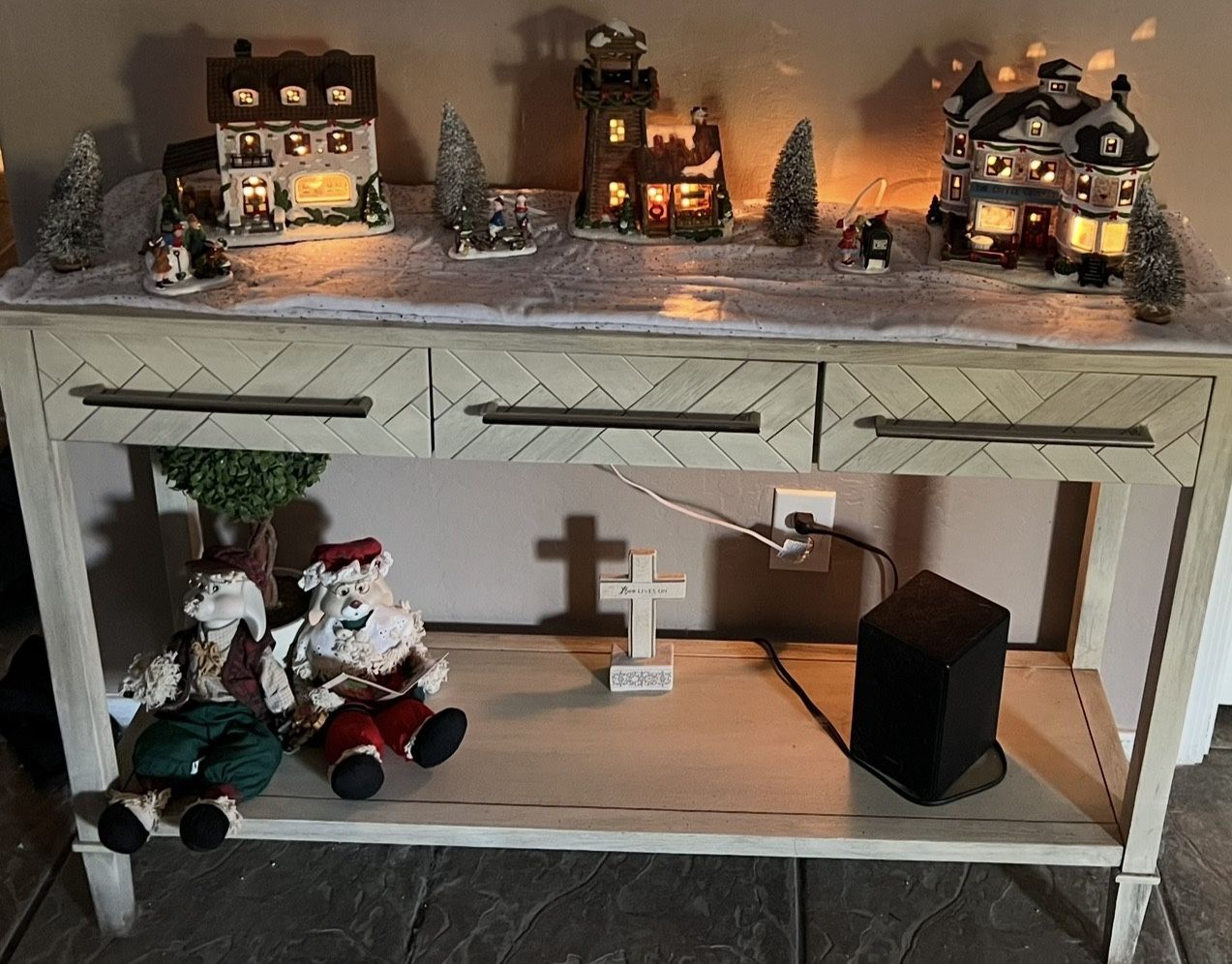 Very nice wall table had it for a couple of years swapping it out for an all white table. Open for offers