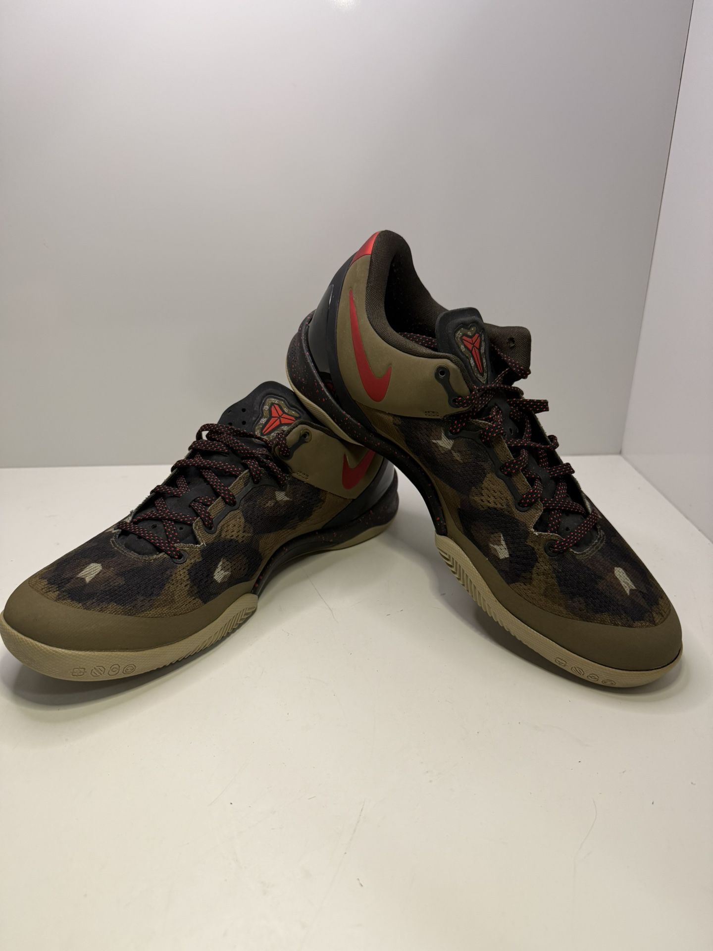 Nike Kobe 8 System “Year of the Snake” sneakers in very good condition. • Style Code: 555035-300 • Size: Men’s US 11 (UK 10 / EUR 45 / CM 29) • Color: Olive / Black / Red camo snakeskin pattern • Condition: Very Good (minor wear, no box) • Details: Lightweight engineered mesh upper, Lunarlon cushioning, snakeskin-inspired design celebrating the Chinese Zodiac “Year of the Snake.” Highly collectible Kobe 8 release that stands out both on and off the court.