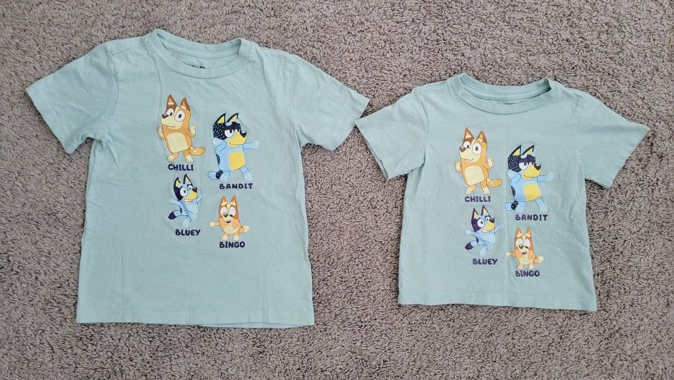 Matching sibling Bluey t-shirts in size 2T and 5T. From a smoke and pet free home.