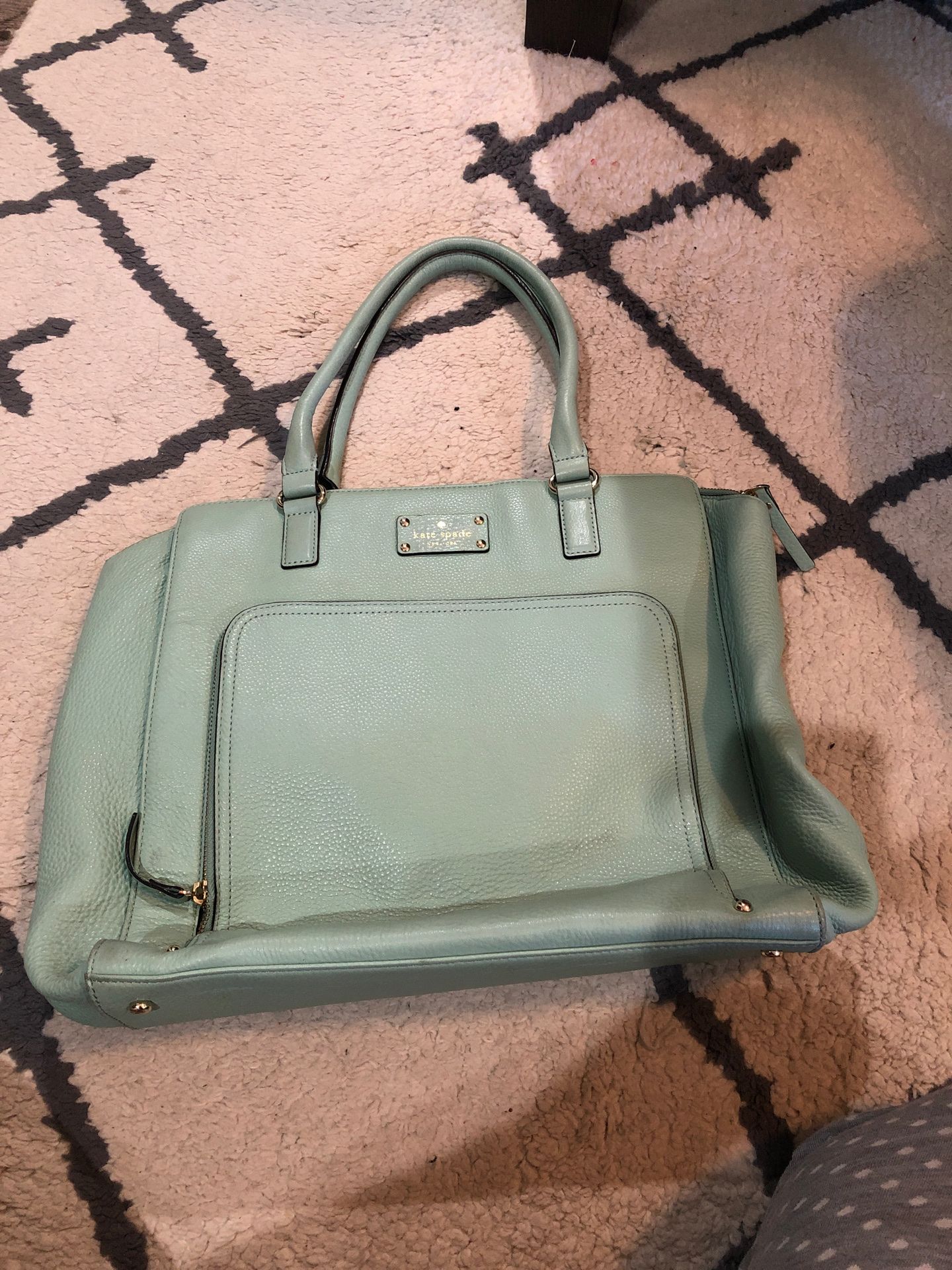 Light green Kate Spade tote bag with zipped front pocket
