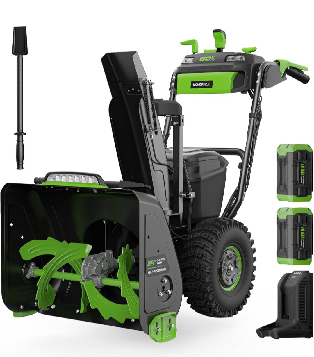 Brand New in Box, Factory Sealed, Never Opened Never Used! Retail - 1979.99 (+tax) 😭 Get it here for 1584 today! 👍 60V Self-Propelled 24-Inch Cordless Snow Blower, 20" Intake Height, 200° Adjustable Chute & 0–80° Deflector, Throws up to 50 ft, LED Headlight, (2) 10Ah Batteries & Charger Included 60V Brushless Motor with Gas-Like Power: The high-efficiency 60V brushless motor delivers strong, stable performance that rivals gas-powered blowers—without the pull cords, exhaust, or maintenance. It powers through packed snow and icy buildup while keeping operation quiet, clean, and hassle-free. 24-Inch Clearing Width and 20-Inch Intake Height: Clear more snow in less time. The 24" wide intake sweeps large paths in a single pass, while the 20" intake height handles deep, heavy accumulation with ease. Ideal for residential driveways, sidewalks, and light commercial areas after heavy snowfall. Throws Snow up to 50 Feet with 180° Electric Chute Control: Launch snow far and fast to keep your path clear. The dual-stage system breaks up snow and ice, sending it up to 50 feet away. Adjust the chute direction electronically without stopping, allowing you to place snow exactly where you want it—no cranking required. Variable-Speed Self-Propelled Drive with Reverse Mode: No more struggling to push through snow. With forward speeds adjustable from 0.5 to 1.2 m/s and a dedicated reverse gear at 0.45 m/s, the self-propelled system makes maneuvering on icy or inclined surfaces smooth and effortless—even for older users. Dual-Speed Auger for Light or Heavy Snow Conditions: Tackle different snow types with precision. Use the high-speed setting (1100 RPM) for dry powder or switch to low speed (770 RPM) for dense, wet snow. Whether it’s a light flurry or a heavy, slushy mess, you’ll always have the right power for the job. 12 LED Headlights and Reliable Operation in -20°C Cold: Work confidently anytime, even in the dark or freezing temperatures. The integrated LED lighting system lights up your path, while cold-resistant engineering ensures the machine starts and performs reliably down to -20°C. Built for real winters, day or night.