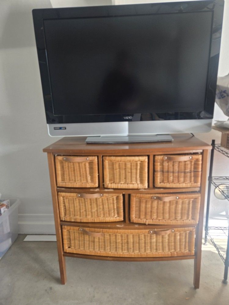 Wicker shelf, 6 drawers Small scratches here and there but still functional OBO