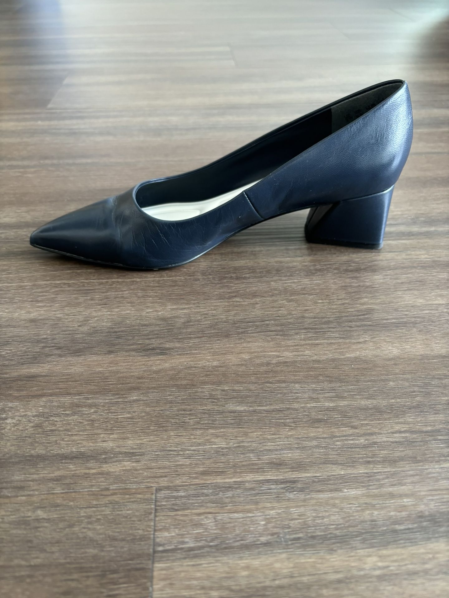 Genuine leather. Worn three times. Purchased for $132 ( w/tax ). Navy blue. Size 9. Very soft comfortable insoles. Franco Sarto Leather women’s Pumps