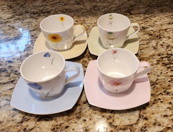 4 Sets Of Coffee Or Tea Cup With Saucer