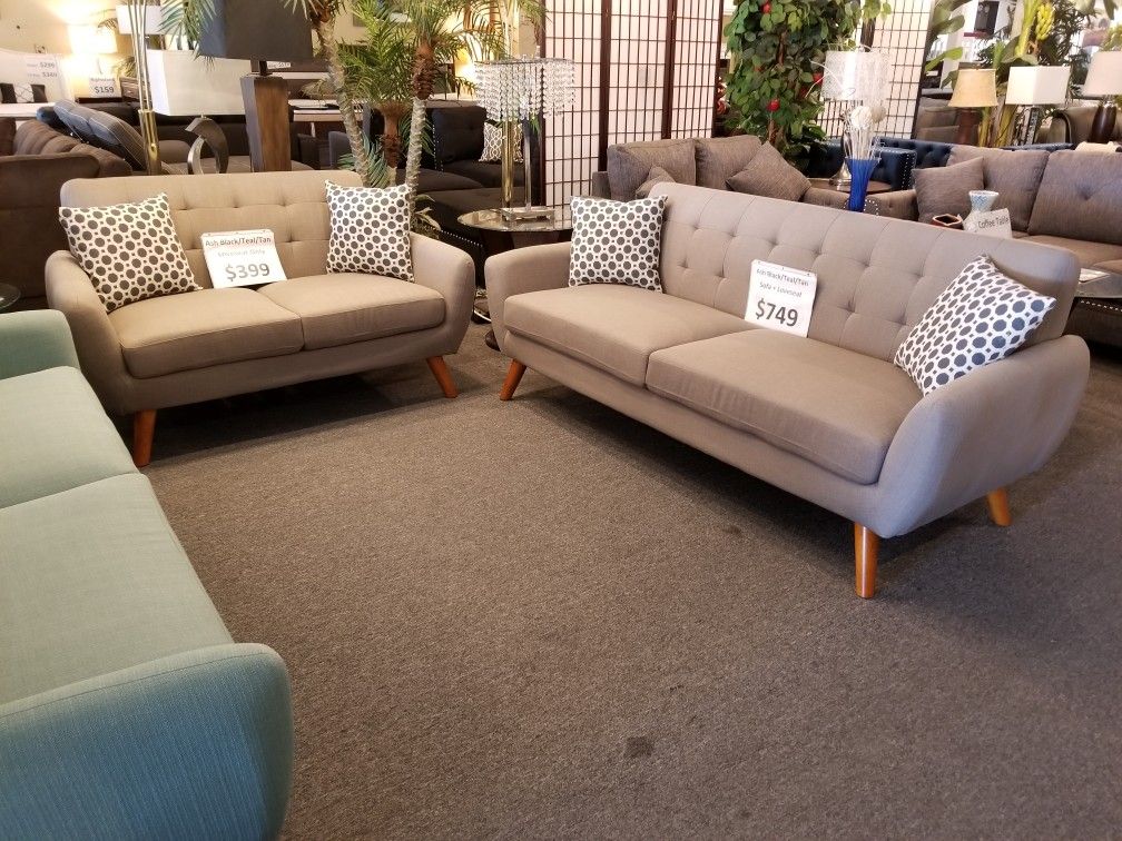 Brand New Light Tan Midcentury 82" Sofa + 60" Loveseat 2PCs Set