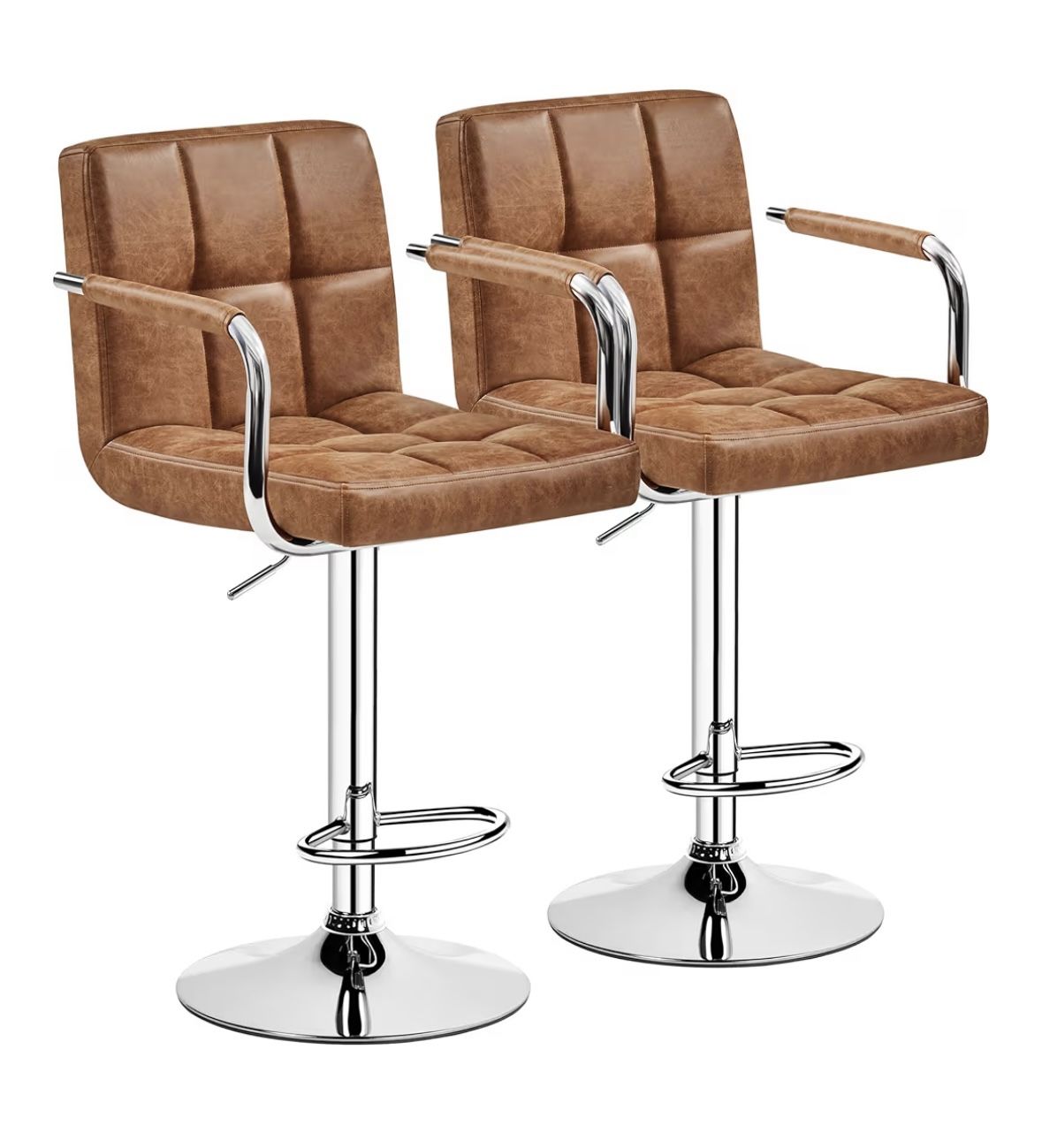 2 brown cloth/suede bar stools, adjustable counter to bar height