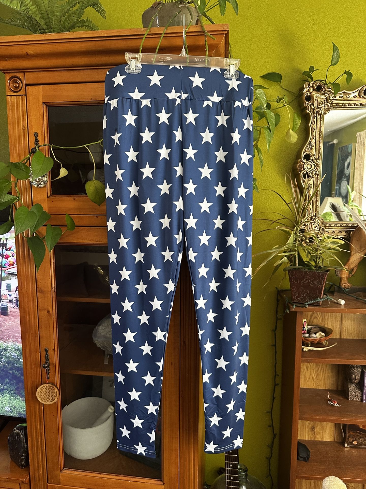 Xxl stretchy fun 4th of July leggings. I paid $21 plus tax and shipping. I ended up choosing a 4th of July dress for my event instead. Selling for $5