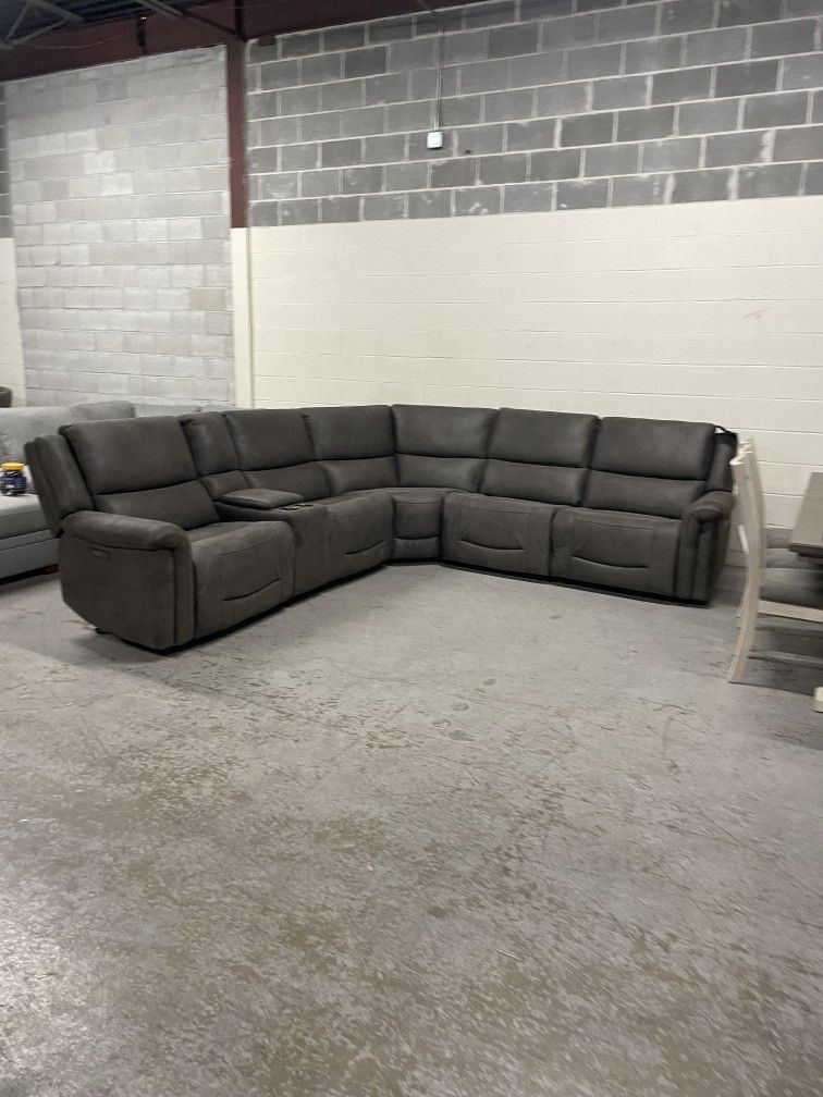 Dimensions: 116.1 in W x 129.1 in L x 41.3 in H. Brand new. No issues. Ask about delivery or coming to see it in person. Your interest is always appreciated! Do get in touch if there are any questions, comments, or concerns. Click on my profile to see the other sectionals and couches we offer, or visit Deerfield Furniture Mart by appointment.