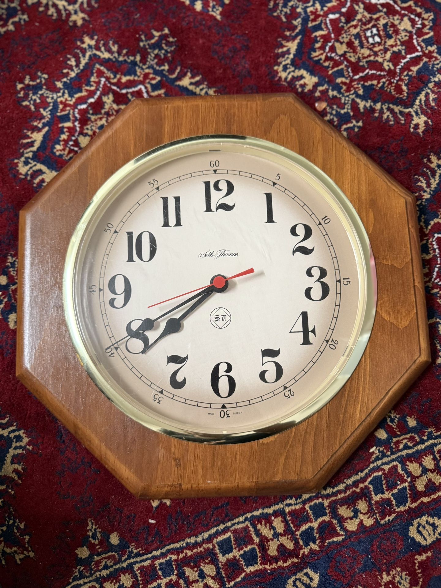 Vintage Seth Thomas Wall Clock Beautiful classic Seth Thomas wall clock with a solid wood octagon frame and clear glass cover. Timeless design that fits perfectly in any home dรฉcor. Keeps time well and adds a touch of vintage charm to any space. ๐ฐ๏ธ Brand: Seth Thomas ๐ Size: Standard wall clock โ๏ธ Condition: Excellent โ clean and working ๐ Ready to hang ๐ต Price: $85 (or best offer) ๐ Pickup in skokie