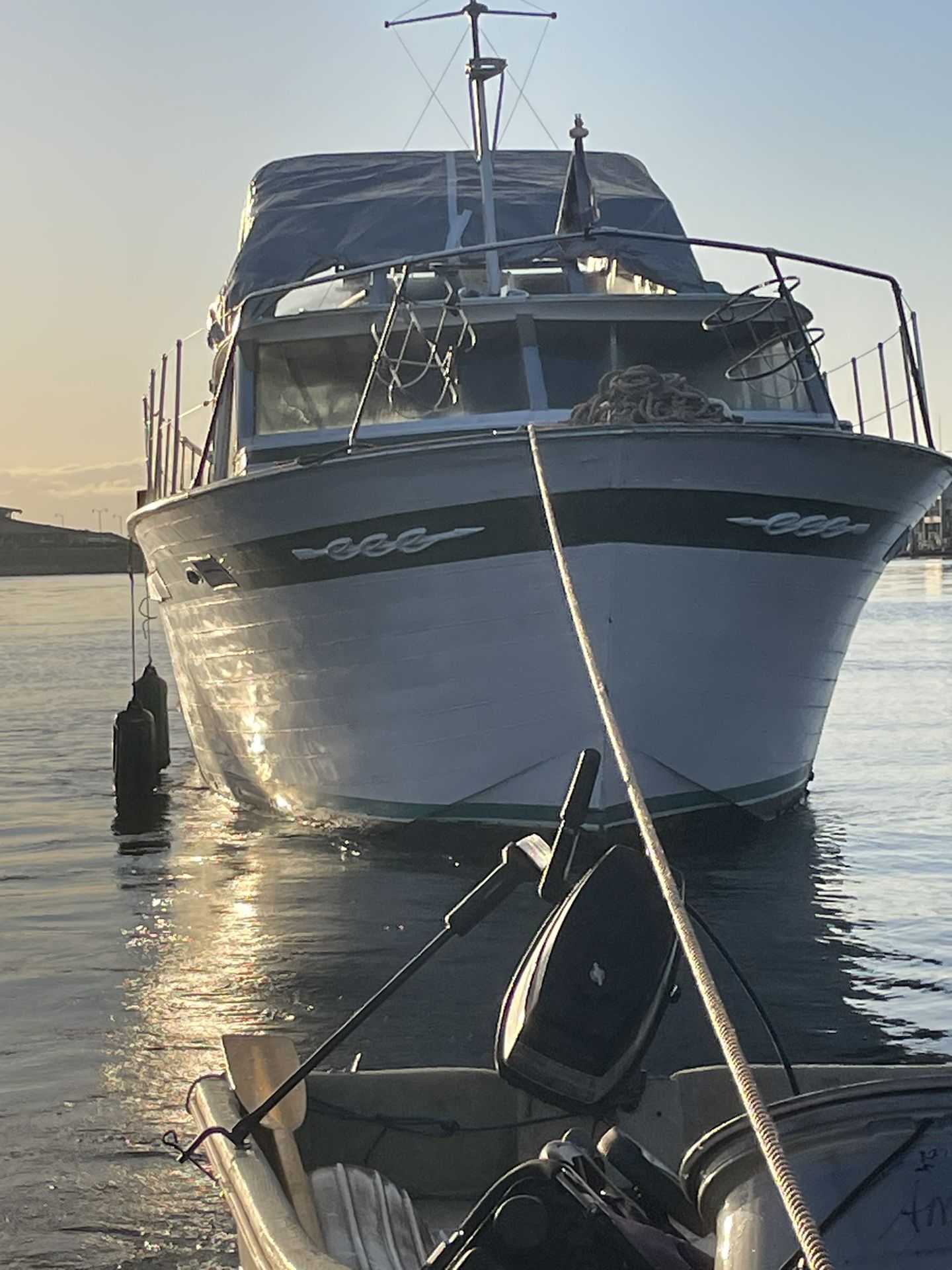 For sale or trade Stored under cover for 20+ years Twin 427 Ford gas engines unknown condition-needs batteries and one engine needs a starter. Teak 2 staterooms 2 heads Flybridge Requires attention but not junk A worthy project Purchased for $80,000 in 1982