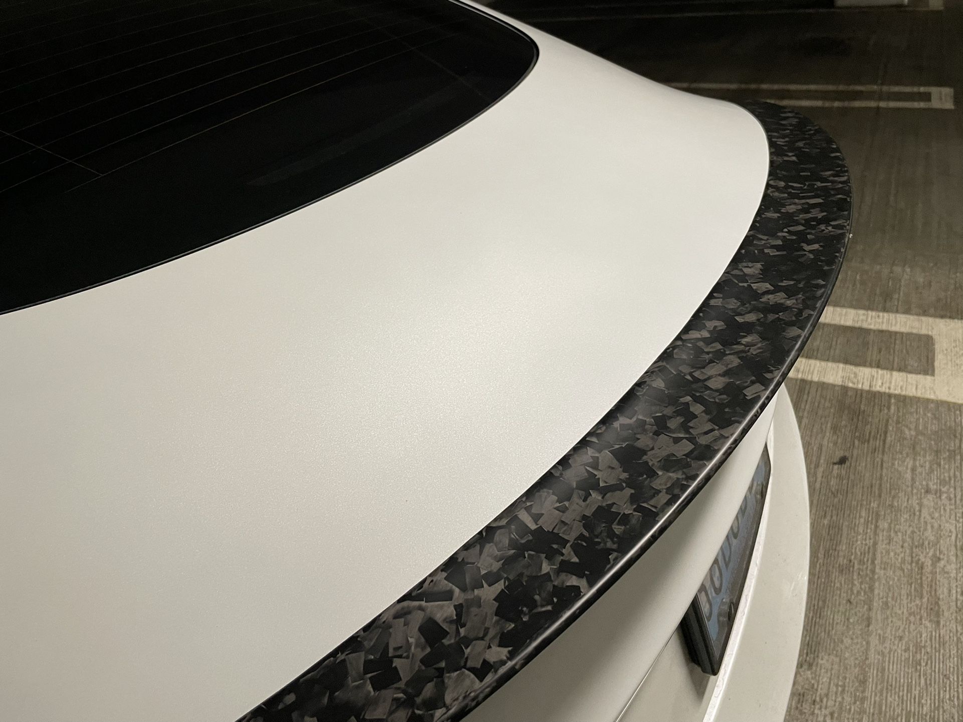 New / Unmounted Tesla Model Y real forged carbon fiber spoiler. I have one of these available for local sale / pickup. If you are looking for other products - Im the owner of TESLAMIZE. Pictures also show the forged carbon spoiler mounted on our Model 3.