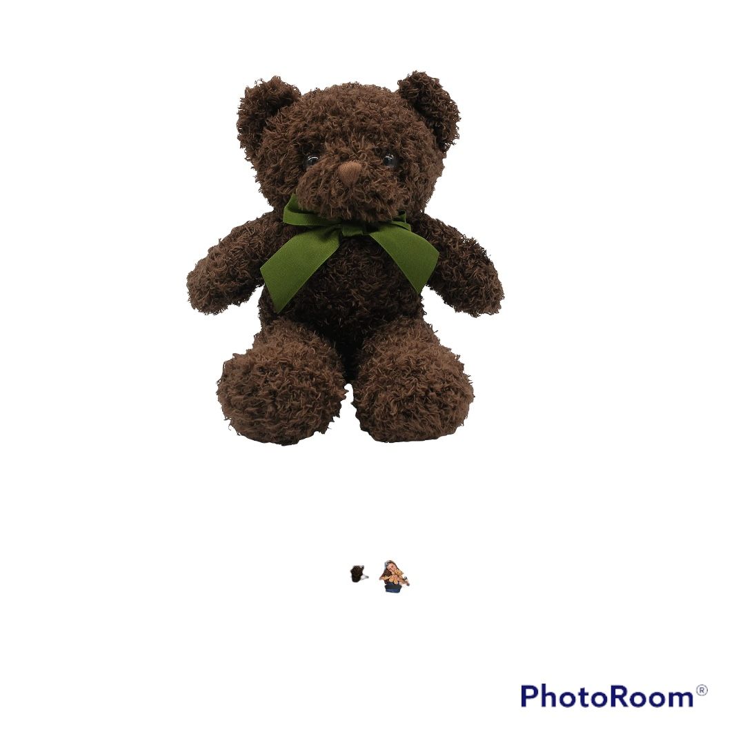 Fluffuns Teddy Bear Plush Brown with green bow “9