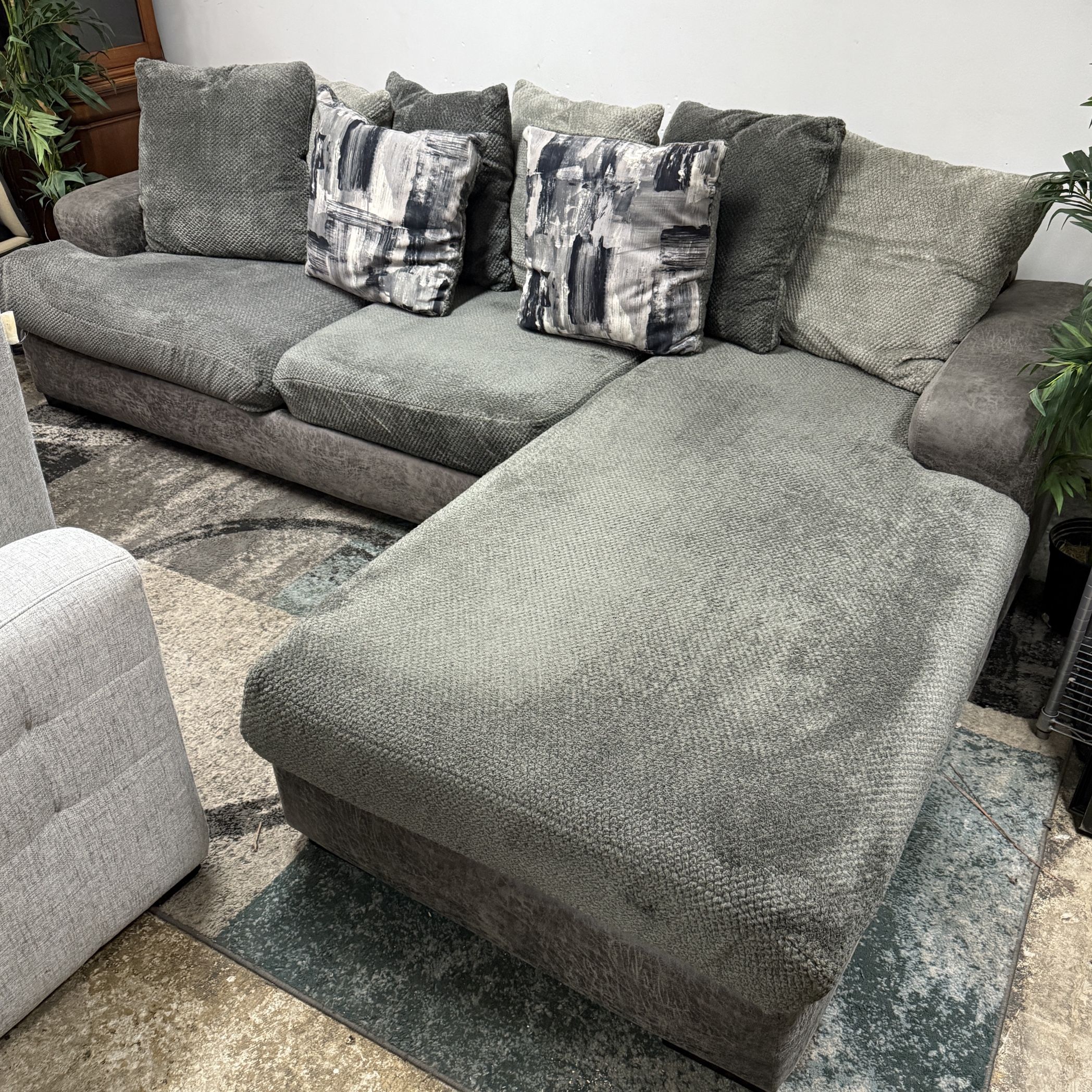 Beautiful Plush Gray Sectional Sofa. Free curbside delivery Islandwide. Couch measures 118in x 78in. Sofa has been shampooed and cleaned.