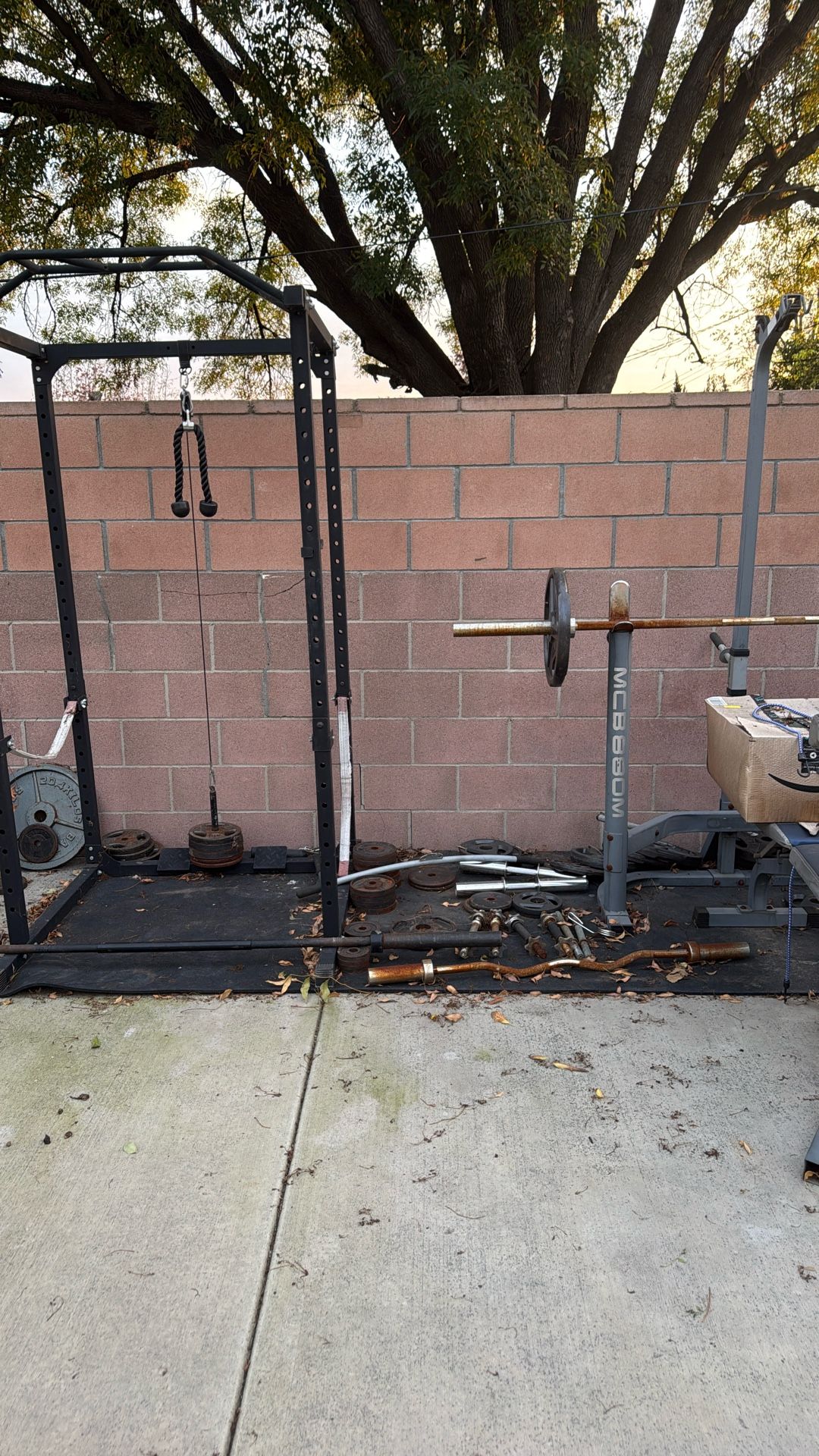 Everything included Bench press char Bottom pad Pull up bar And all the weights