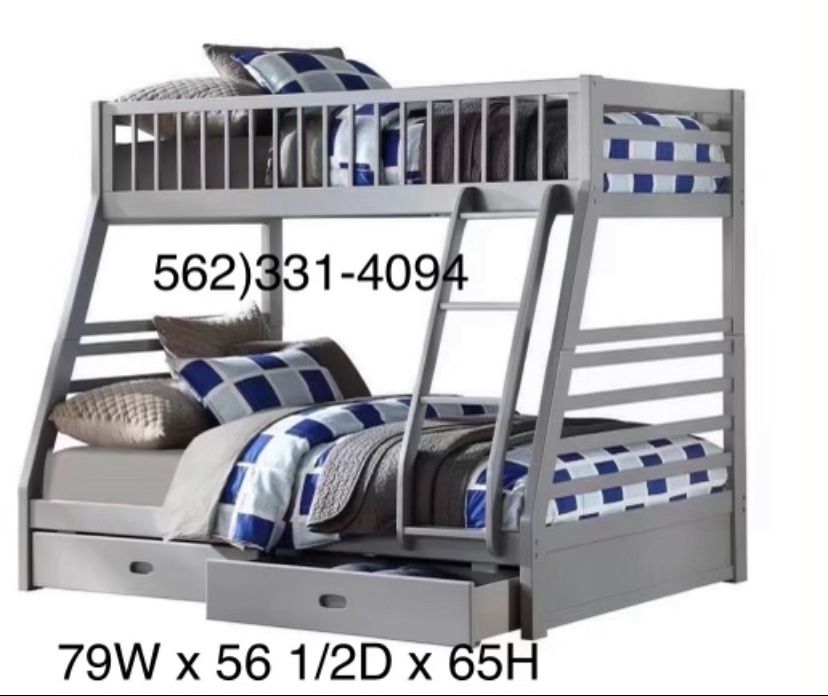 Gray Full / Twin Wooden Bunkbed With Both Nice Mattresses Included ππΌ We carry: Tenemos: Twin, full, queen, king, Calking beds & Mattresses.
