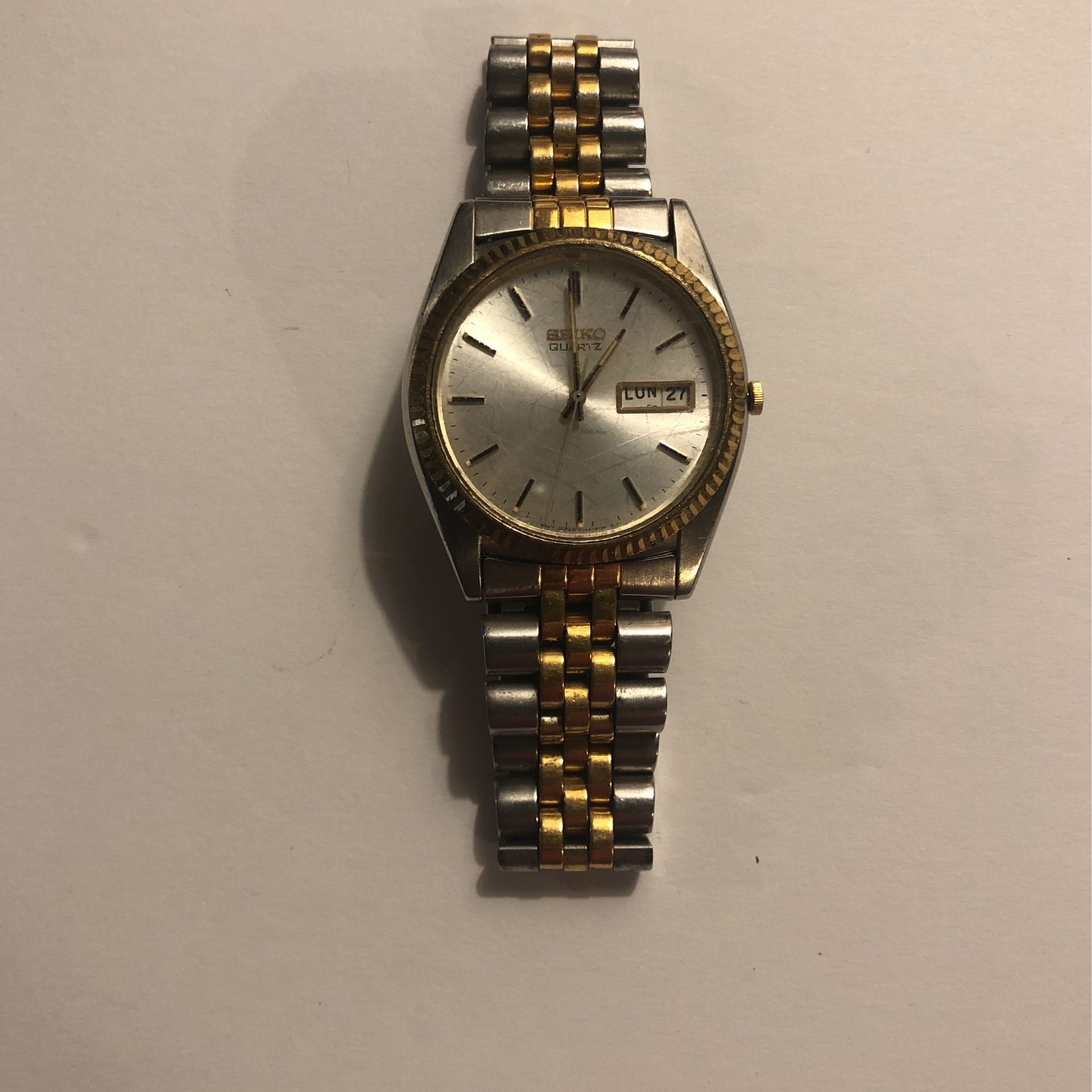 Seiko watch 25+ years old Working Has normal signs of wear Gold and silver dual tone Water resistant Stainless steel base metal bezel TN43-8111 Mov’t Japan 070694