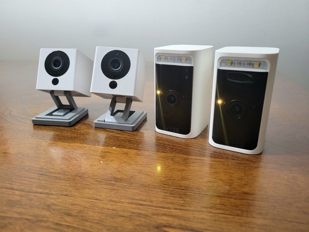 Wyze Smart Home Security Cameras Set of 4 Cameras 2 Wyze Battery Cam Pro 2 Wyze Cam V2 Good Condition.
