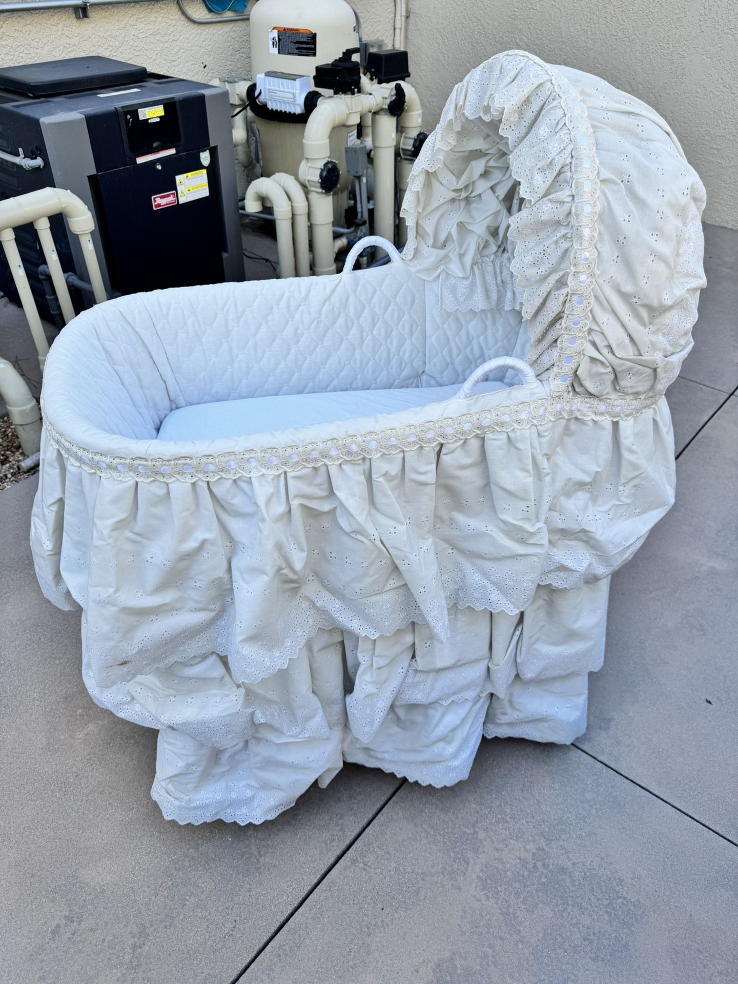 Family bassinet in storage for 25 years. Time for it to Grace another family. Custom made. Includes mattress pad.
