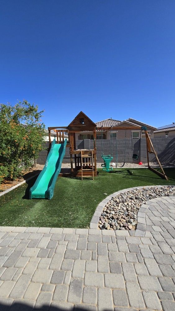Wooden swing set. Purchased new for $1,500 Sadly, our dog chewed some of the wood You'd be responsible for disassembling the swing set and play house. DIY project Must be gone ASAP. $200 OR BEST OFFER