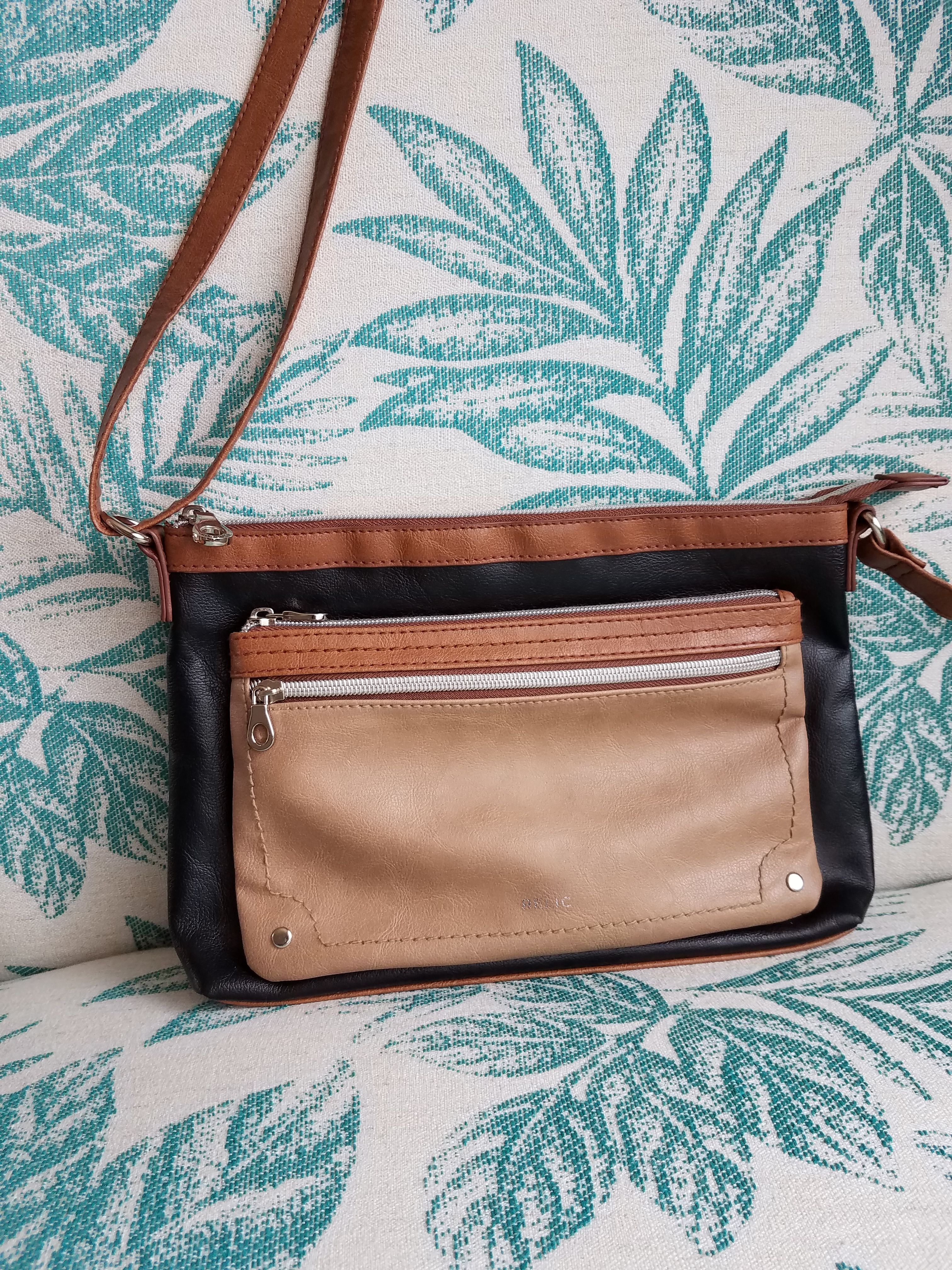 12" wide 8" tall. Woman's/Girl's. 2 zip outside pockets. 1 zip pocket inside. Adjustable strap can be crossbody or shoulder. New and Flawless. Great look. Thank you for looking. Have a Blessed Day!